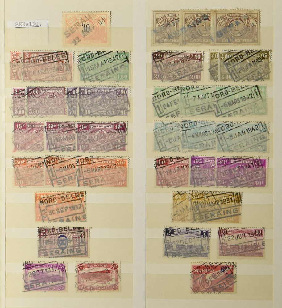 2429 0 imageAccumulation of +/-350 circular cancels, 6 corners, railway postmarks in 2 stockbooks + album leaves, vf/f/to be checked(Image 1) (Image 2)