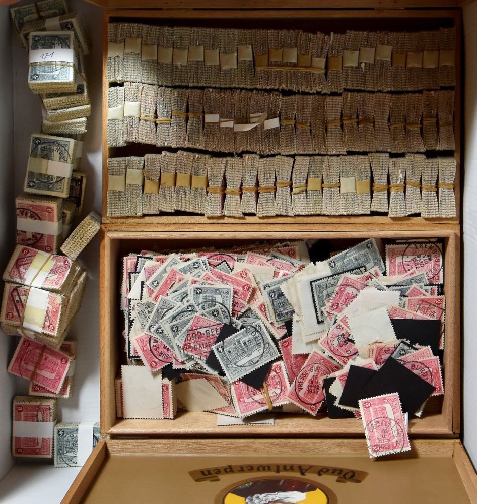 2425 0 imageRemainder collection Liège, including e-stamps from 1897, BXL, Moustache, waybills (including Anvers Bassin 1921), vf/f.(Image 1) (Image 2)