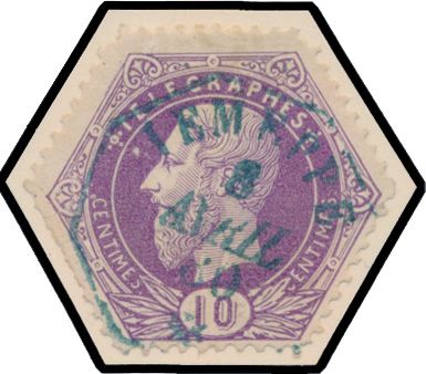 2438 0 imageTG 3 "10c. pair", with telegraph cancel in blue from Jemeppe, irregular perf, vf/f(Image 1)