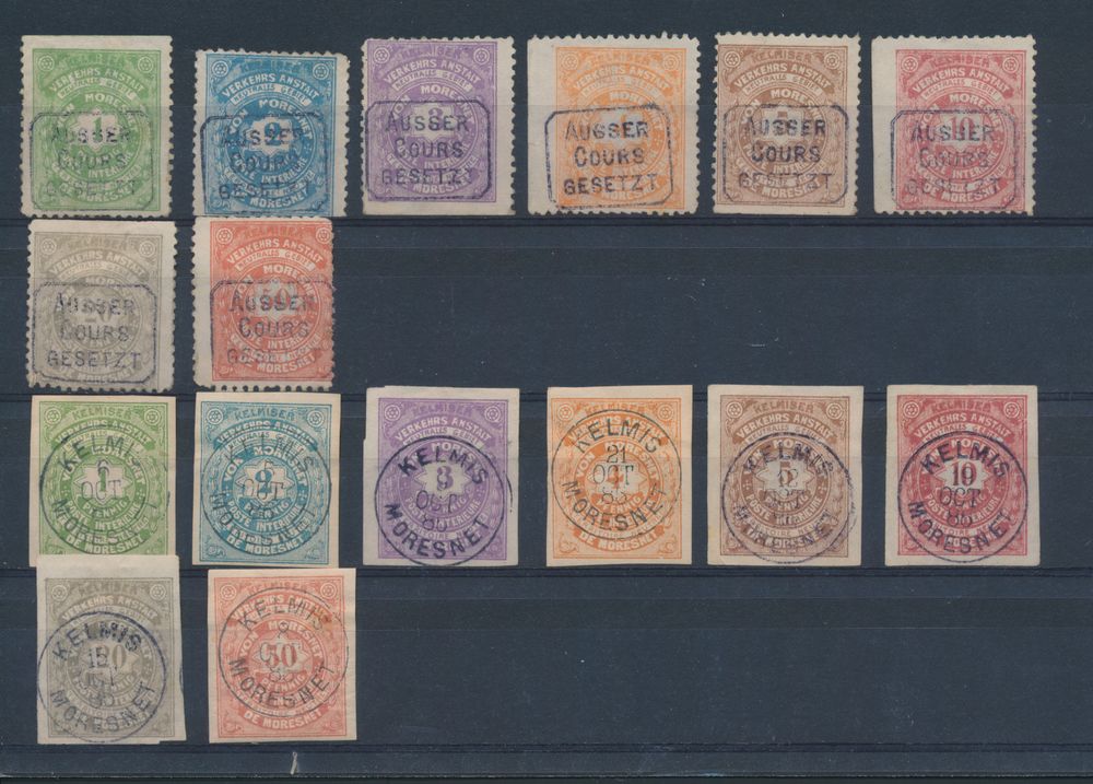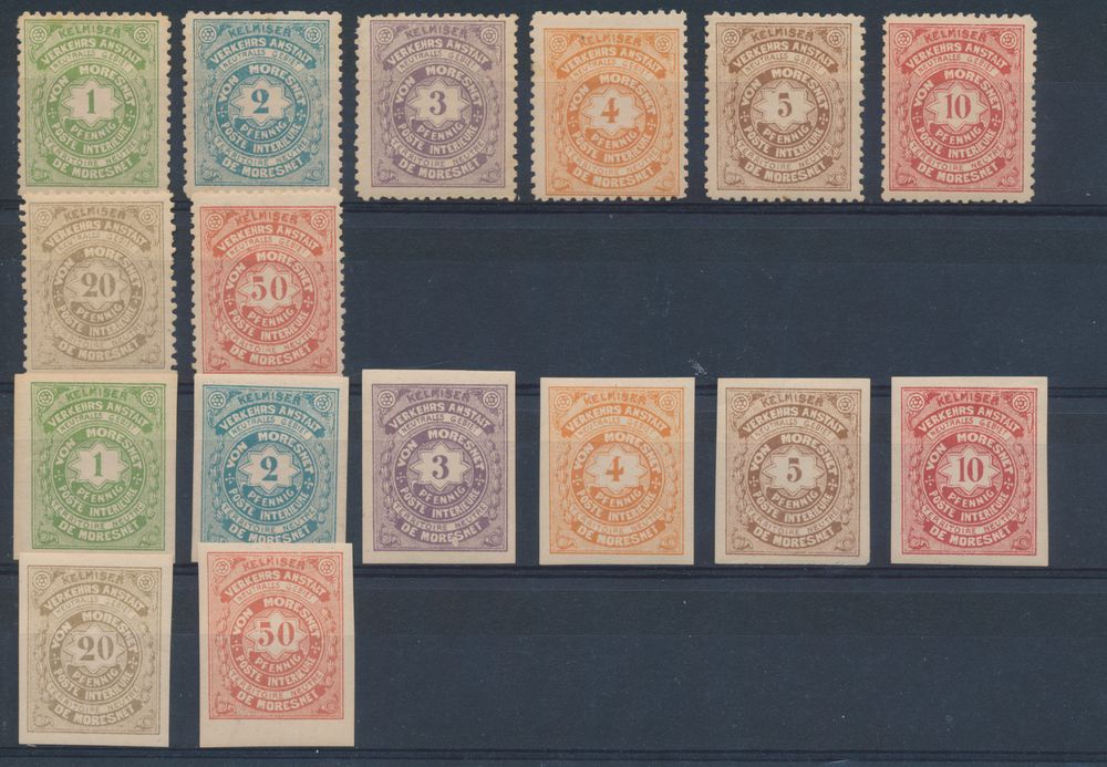 2462 0 imageLO 1/8 and LO 9/16 "Moresnet", perforated, cancellation with "Ausser Cours Gesetzt" and imperforate with "Kelmis Moresnet", in varied condition, f/to be checked (OBP €320)(Image 1)