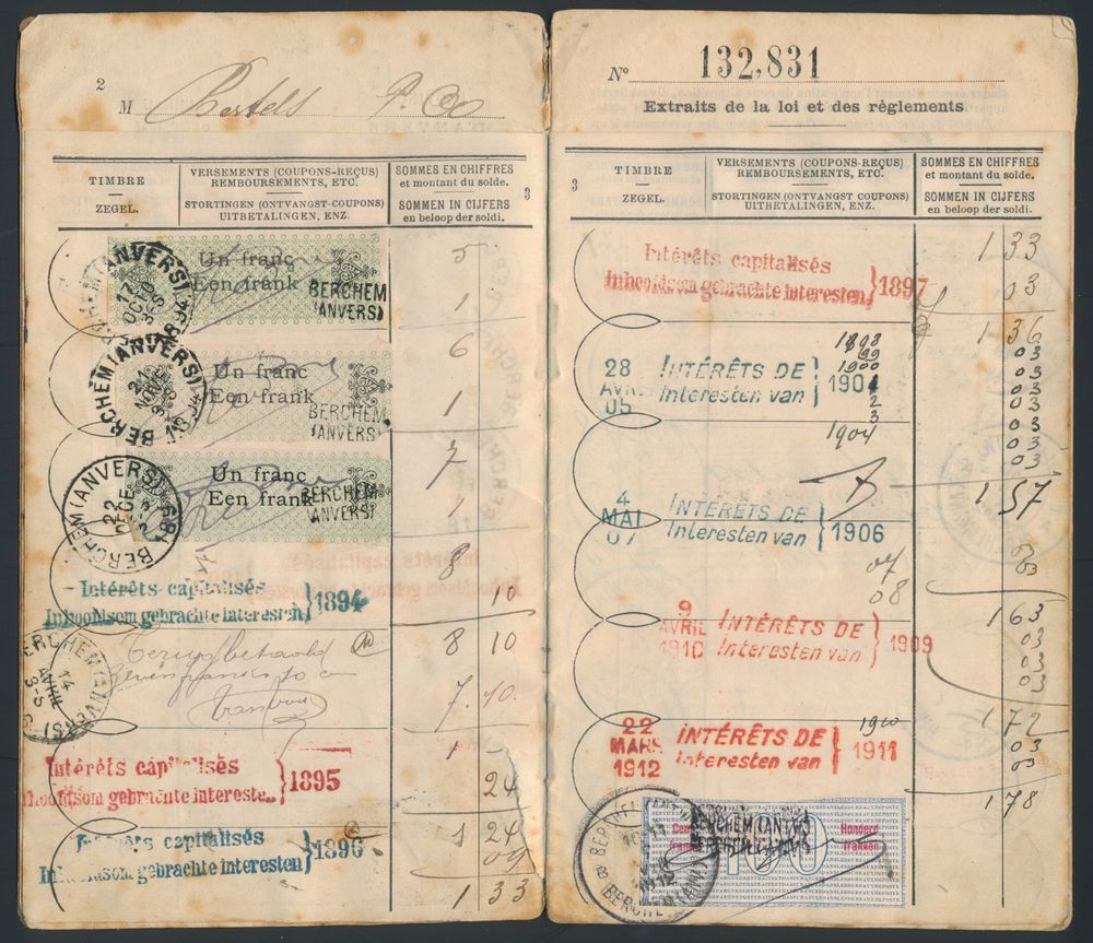 2564 imageASLK savings book 1893/1917 Berchem (Antwerp), complete with various ASLK stamps, f/to be checked(Image 1) (Image 2)