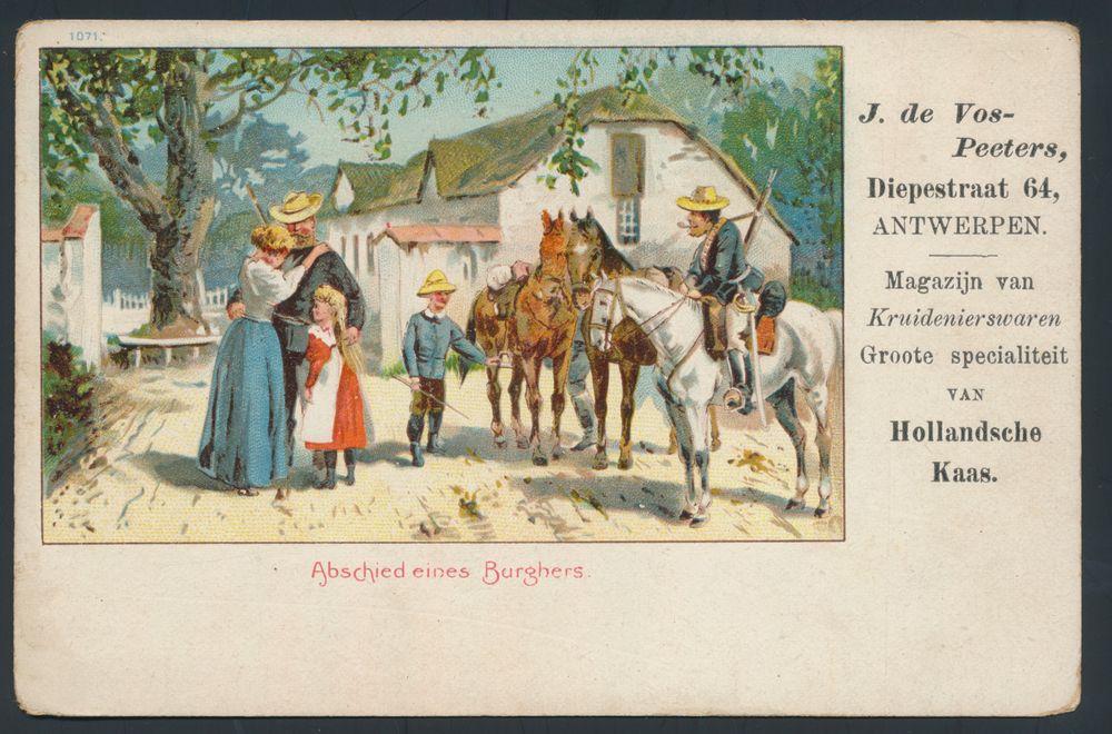 255 ZK imageBoer War, fantasy, published by J. De Vos-Peeters (Diepstraat 64, Antwerp) (5 items)(Image 1) (Image 2) (Image 3)