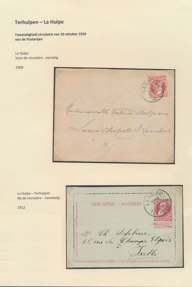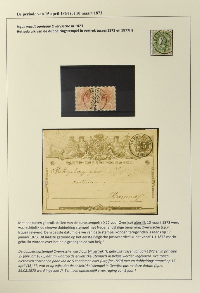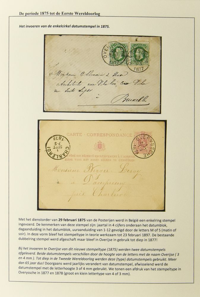 2627 0 image1875/1940 Overijse, beautiful collection, pre-1940, with subjects including tourist cancellations, the interwar period from 1919 to September 1939, telegraph services, the period of World War I I (Liberation, German occupation, provisional postmarks, censorship, etc.), period of epaulettes and medallions, period 1875 to 1914, extensive explanation of the postal items, but also of documents relating to Overijse belonging to the theme, mostly beautifully laid out on A4 sheets, vf(Image 1) (Image 2) (Image 3) (Image 4) (Image 5)
