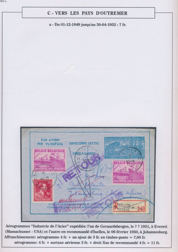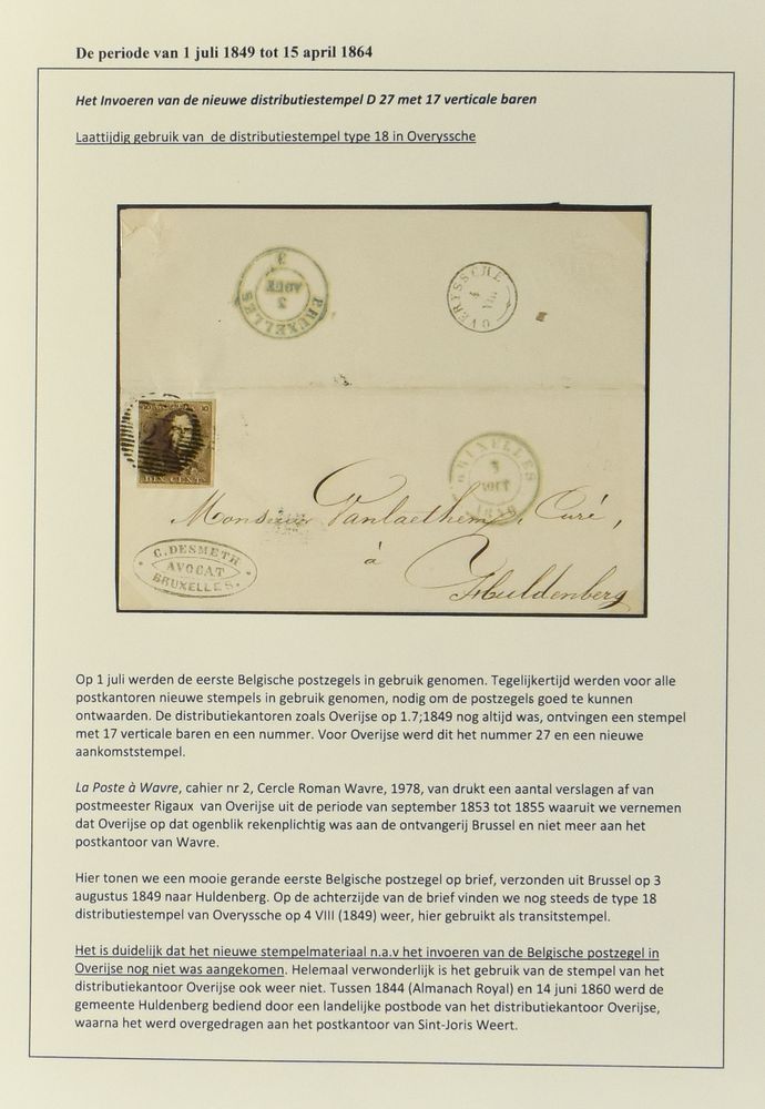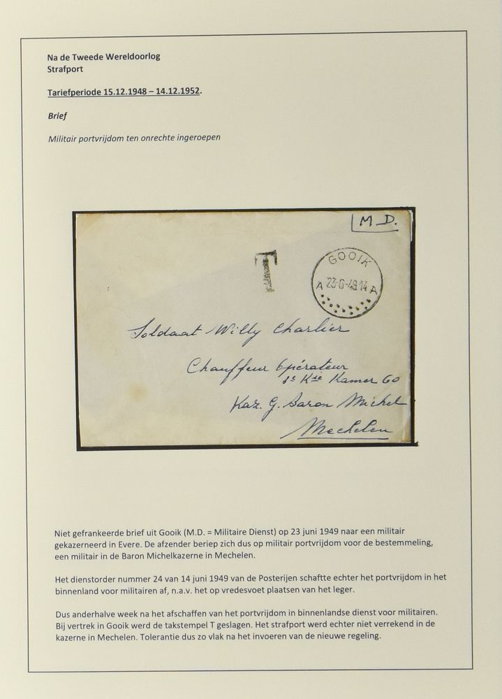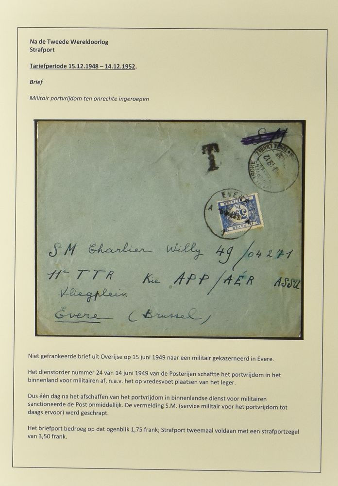 2632 0 imageOverijse, beautiful collection, after World War II, with topics such as the study of date stamps, side stamps and labels, international returns, penalty postage, registered mail, return of mail, note slips, damaged mail, information about Overijse used letterheads, administrative cancellations. Detailed explanation of the postal items, but also of documents relating to Overijse belonging to the theme, mostly beautifully laid out on A4 sheets, vf(Image 1) (Image 2)
