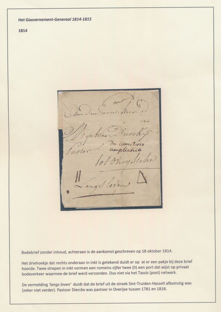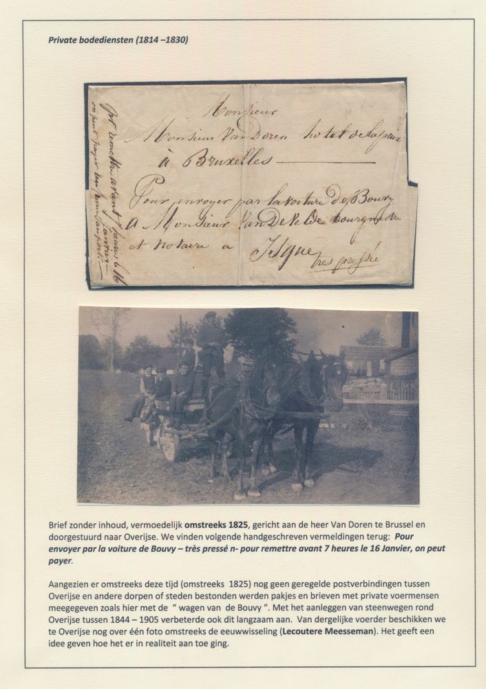 2623 image1814/1830 Forerunners Overijse, with three messenger letters, with diligence, private messenger services and messenger letter with parcel (not via the Tassis network), very nicely illustrated, vf(Image 1) (Image 2) (Image 3) (Image 4)