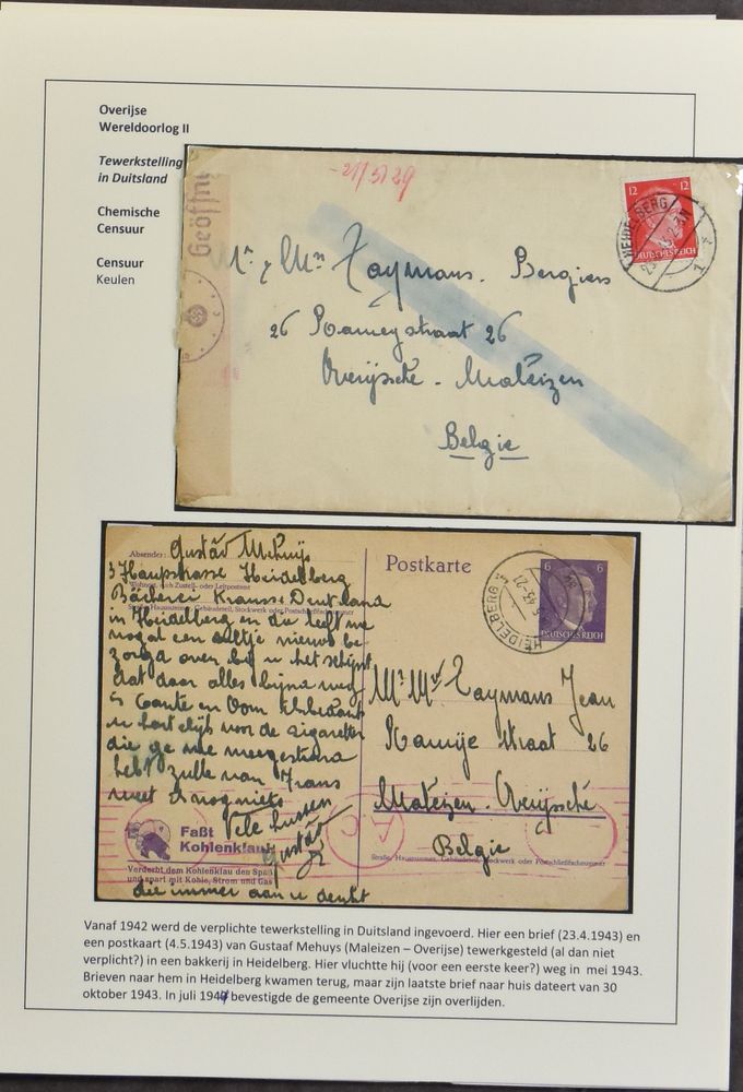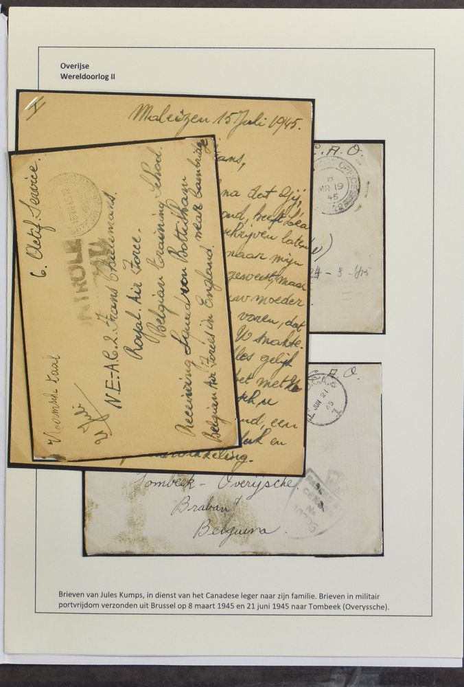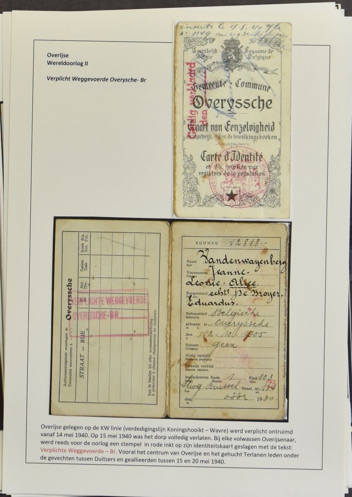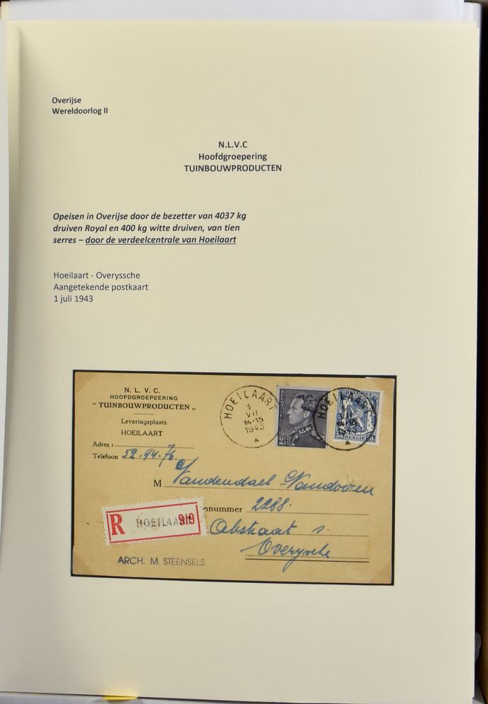 2631 0 imageOverijse, nice collection, World War II, with topics such as occupation information, Epuration (purges), Eastern Front soldiers, employment in Germany, Belgians in training in Ireland, mobilisation, German invasion in May 1940 and liberation. Detailed explanation of the postal items, but also of documents relating to Overijse belonging to the theme, mostly beautifully laid out on A4 sheets, vf(Image 1) (Image 2) (Image 3) (Image 4) (Image 5)