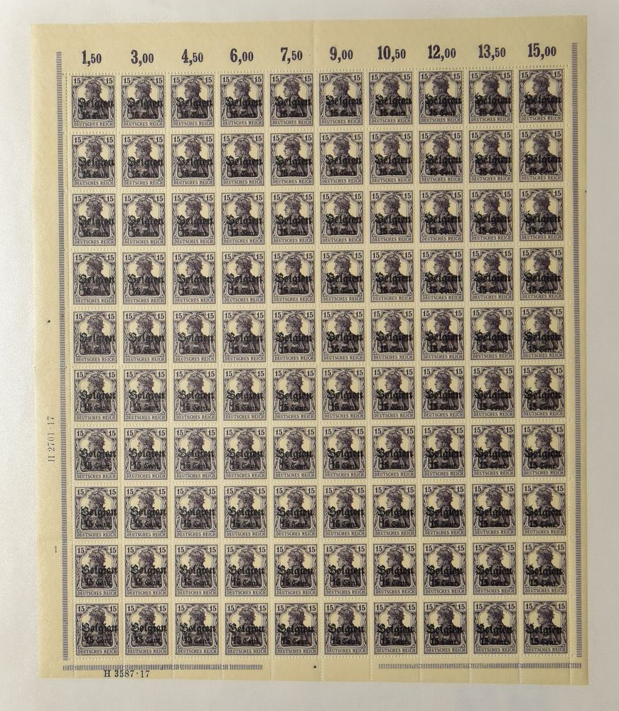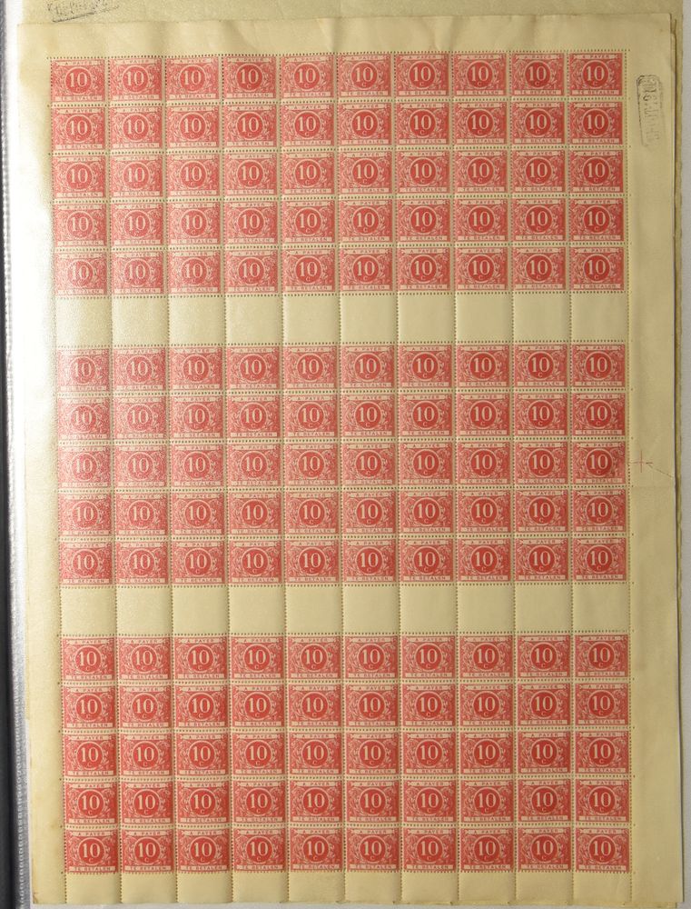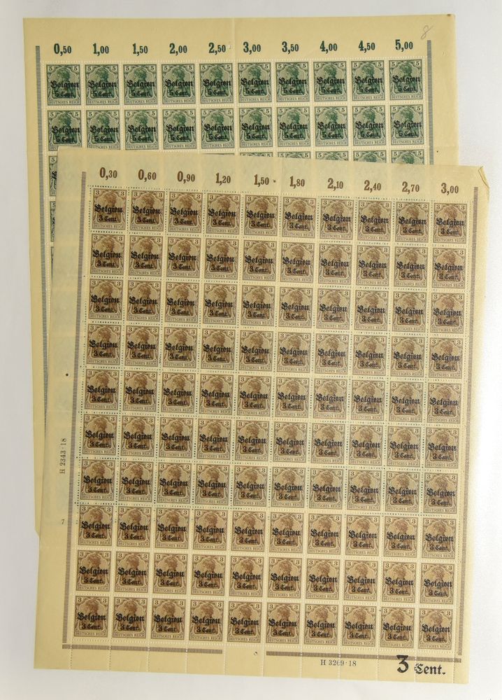 2621 nh imageCollection of 34 sheets, including N° 53 (100 items), TX 5 (6 panels of 50), N° 166 (100 items), N° 777 (50 items), N° 3135, all 6 plates (60 items in 1 sheet), No. 567 (panel of 20 items), N° 503 in full sheet (2 x 15 items), N° 429 plate number 2 (two sheets of 150 items), N° 430, plate number 12 (three sheets of 150 items), N° 431 plate number 3 (sheet of 150 items), N° 431 plate number 4 (sheet of 150 items), OC 11, OC 12, OC 13 and OC 16 (Occupation stamps all in sheets of 100), N° 81 in 3 panels of 25 with intermediate panel, N° 211 plate number 3 (sheet of 150 items), No. 212 plate number 5 (sheet of 100), N° 140 in sheets of 50 (twice), N° 273 sheet of 100, N° 108 (Preo with Brussels 14 Bruxelles), in complete sheet of 100 items with intermediate panel, n° 570 in sheet twice 100 with intermediate panel, n° 378 plate number 4 in sheet of 50 items, vf/f (OBP €7,575)(Image 1) (Image 2) (Image 3) (Image 4) (Image 5) (Image 6) (Image 7)