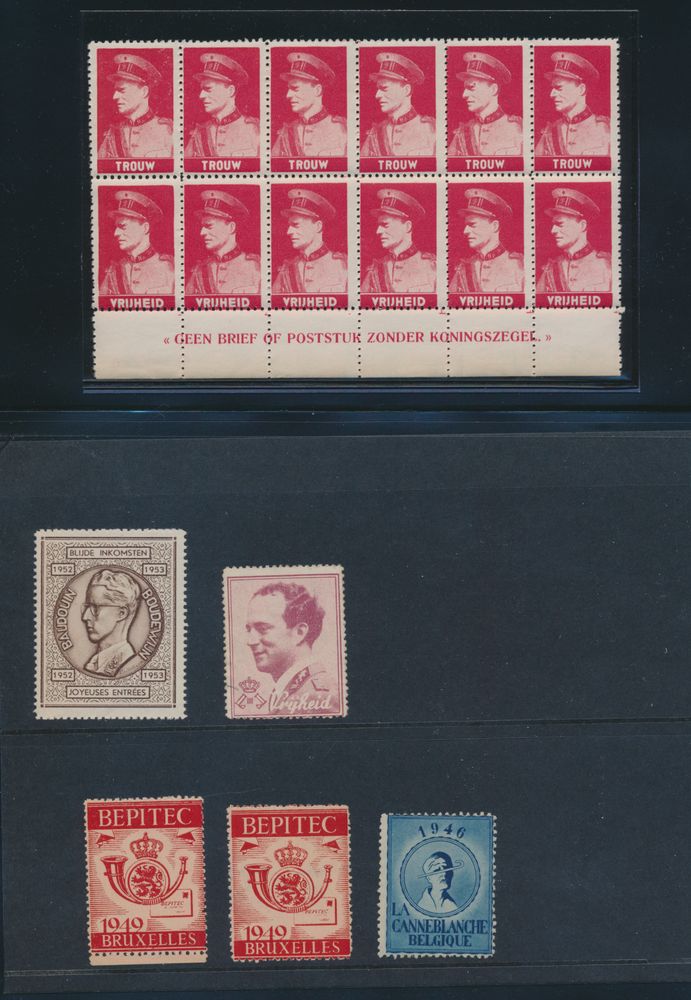 2638 MIX imageRoyal issue, 'Leopold III, the republic or King Baudouin I (referendum 19960)', 6 different vignettes, unused (mint and hinge), including Leopold III ‘Marriage' in red in block of 12 with sheet margin, 5 used items on letter, with 4 other different vignettes, vf(Image 1) (Image 2) (Image 3)