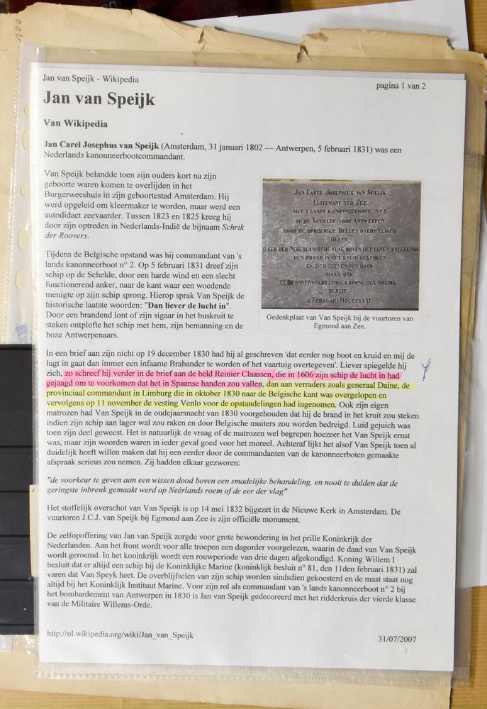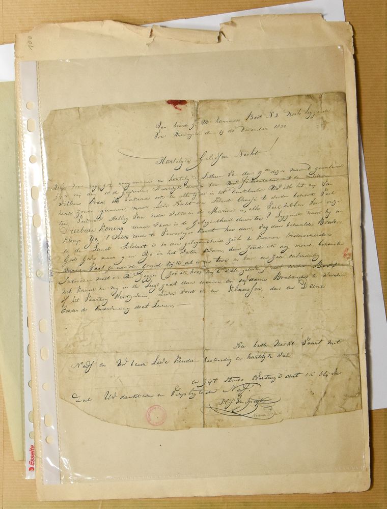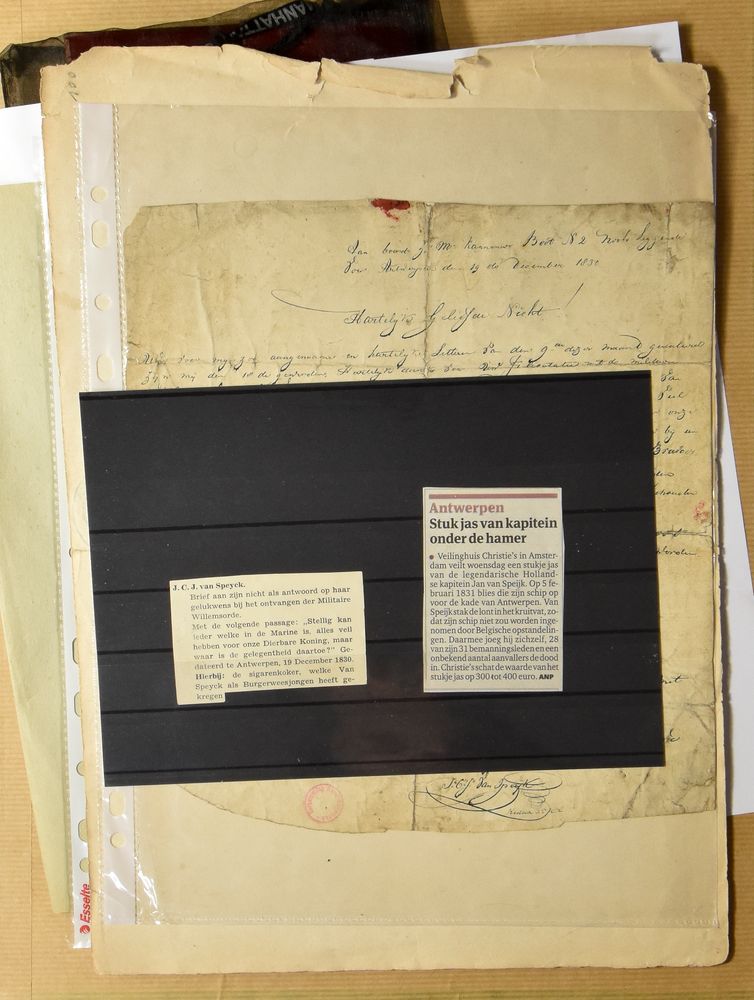 2624 image1831 Jan van Speijk, Dutch gunboat commander - boat N° 2, commander during the Belgian uprising, on 5 February 1831 his ship drifted on the Scheldt, due to strong winds and a malfunctioning anchor, to the side where an angry crowd jumped on his ship, whereupon Van Speijk uttered the historic last words "Then I'd rather go up in smoke" and blew up the boat. This lot contains 3 medals, several offsets of the Belgian uprising, a letter from Van Speijk to his niece on 19 December 1830, several prints of Van Speijk, historical document, unique, vf(Image 1) (Image 2) (Image 3) (Image 4) (Image 5) (Image 6)