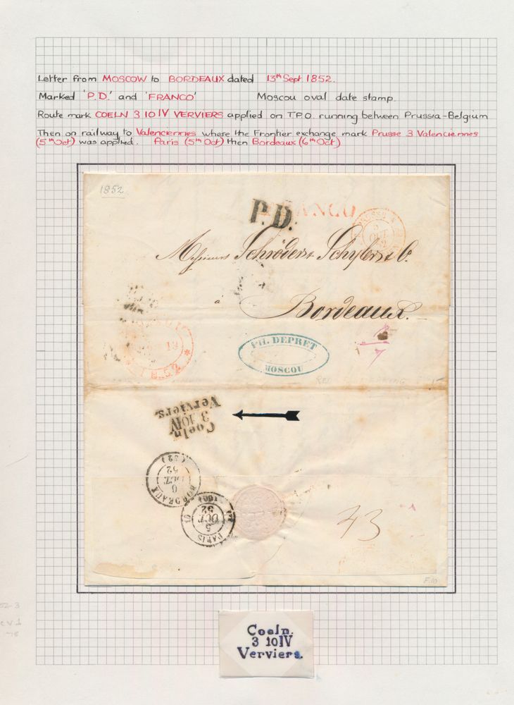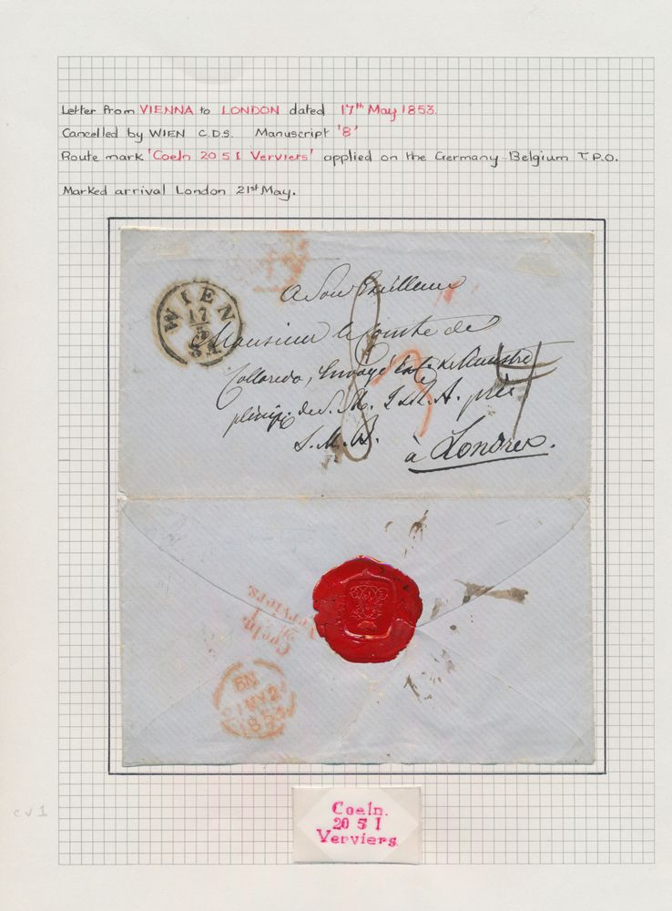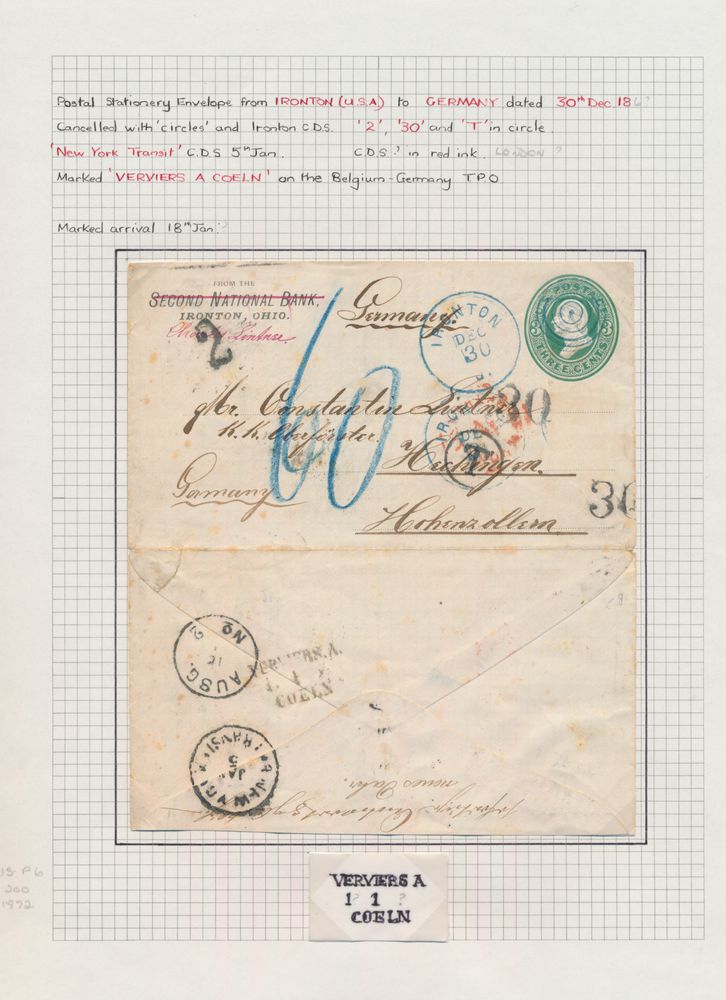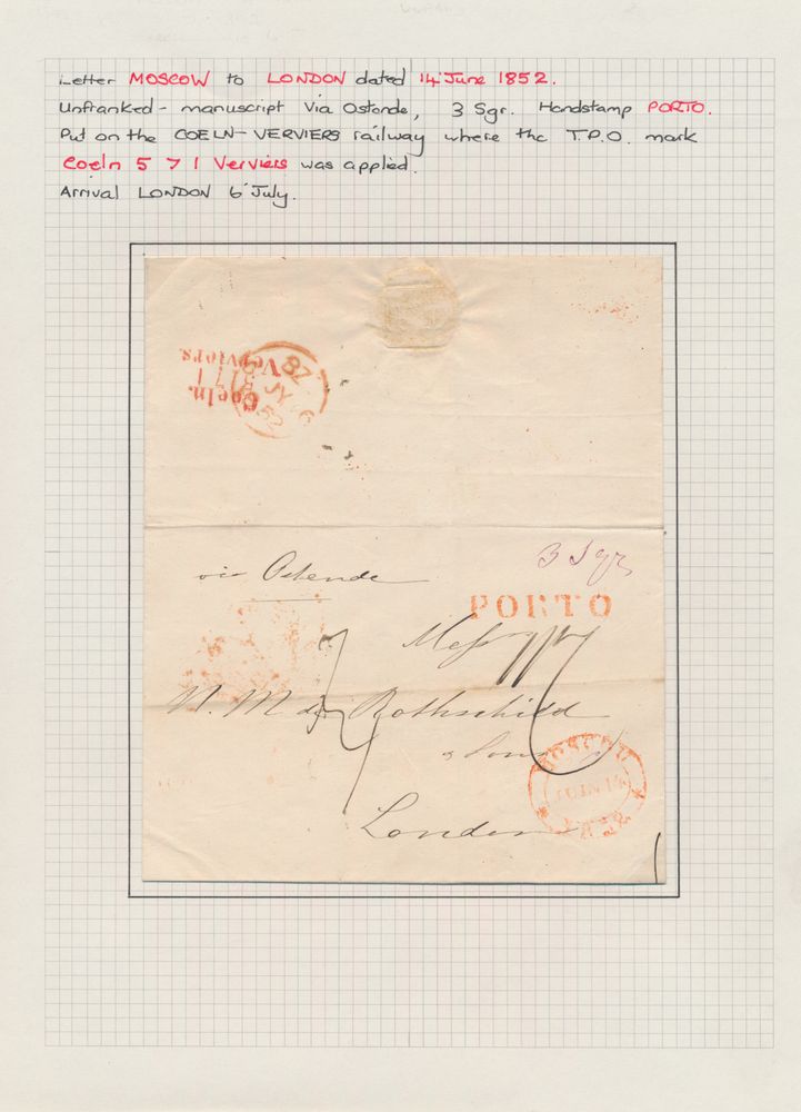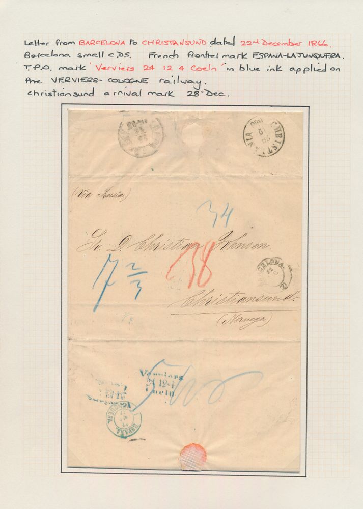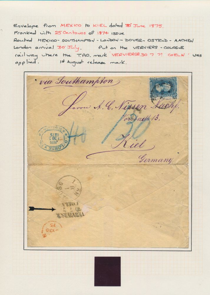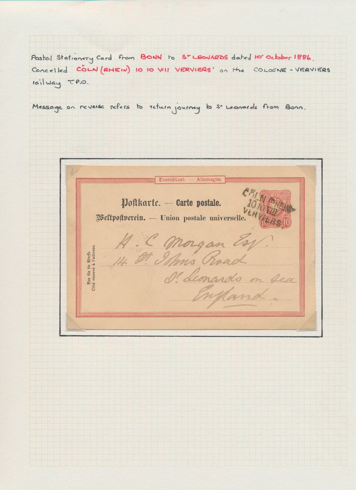 2635 0 imageNice collection concerning railway Cologne-Verviers (Cologne-Verviers) cancelled in 3 lines "Verviers / date / Coeln" or " Coln(Rhein) / date / Verviers". 6 stamps (Germany, Belgium and Haiti) including strip of 3 (Germany). 19 documents (letters and stationery) from Belgium, Switzerland, Spain (4 ex.), Austria, USA, Russia (2 ex.), Mexico, France (2 ex.) and Germany (6 ex.). Beautiful documents with multiple postmarks and different destinations, vf(Image 1) (Image 2) (Image 3) (Image 4) (Image 5) (Image 6) (Image 7) (Image 8) (Image 9) (Image 10) (Image 11) (Image 12) (Image 13) (Image 14) (Image 15) (Image 16) (Image 17) (Image 18) (Image 19) (Image 20)