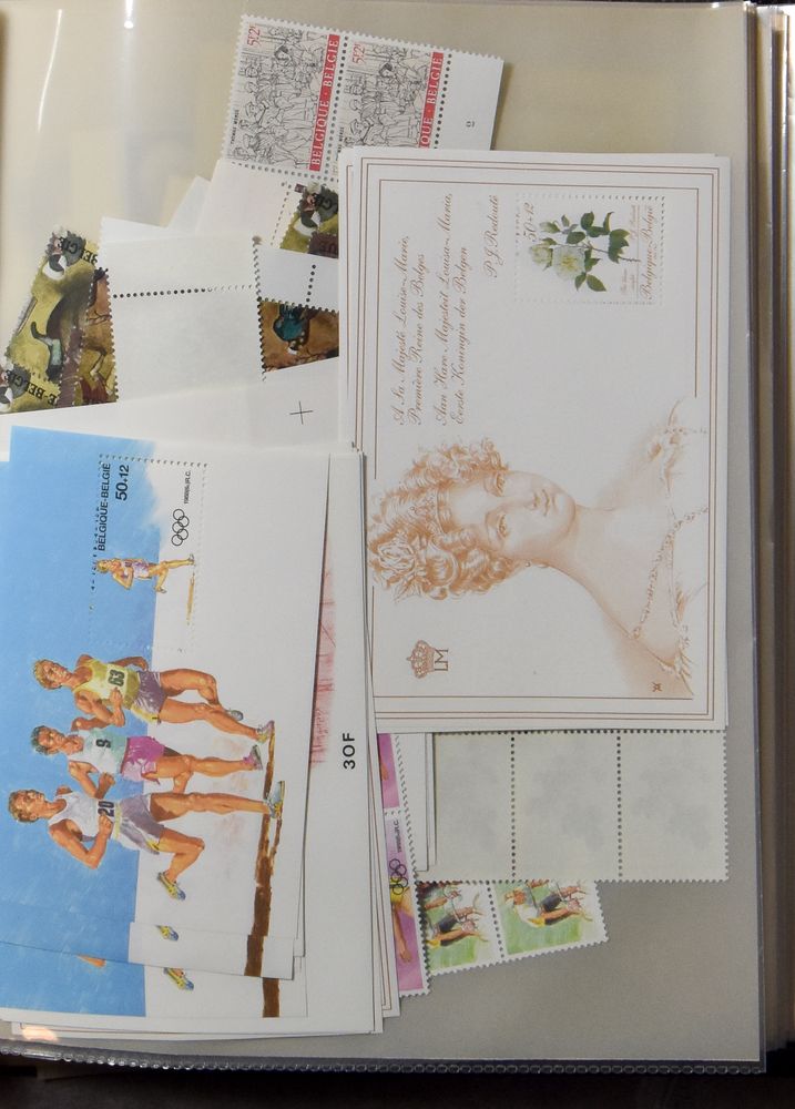 and 100s of postal folders, filled with postage stamps in quantities (1975/88), vf/f.(Image 1)