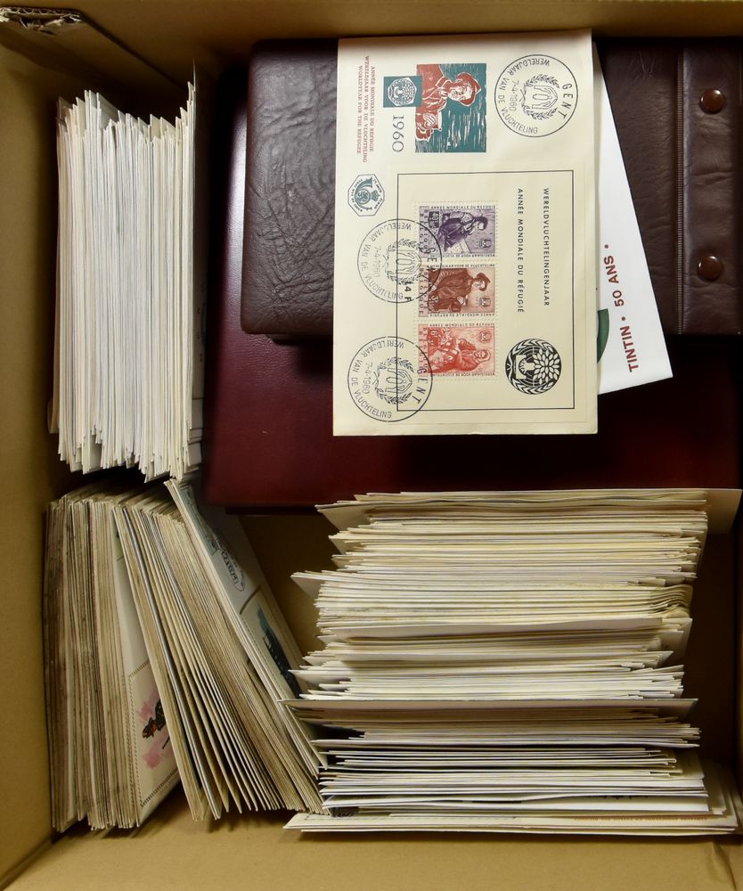 post, FDCs including Tintin '79 and BL 32, envelopes often slightly damaged, stamps OK, +/-500 items, f/to be checked(Image 1)