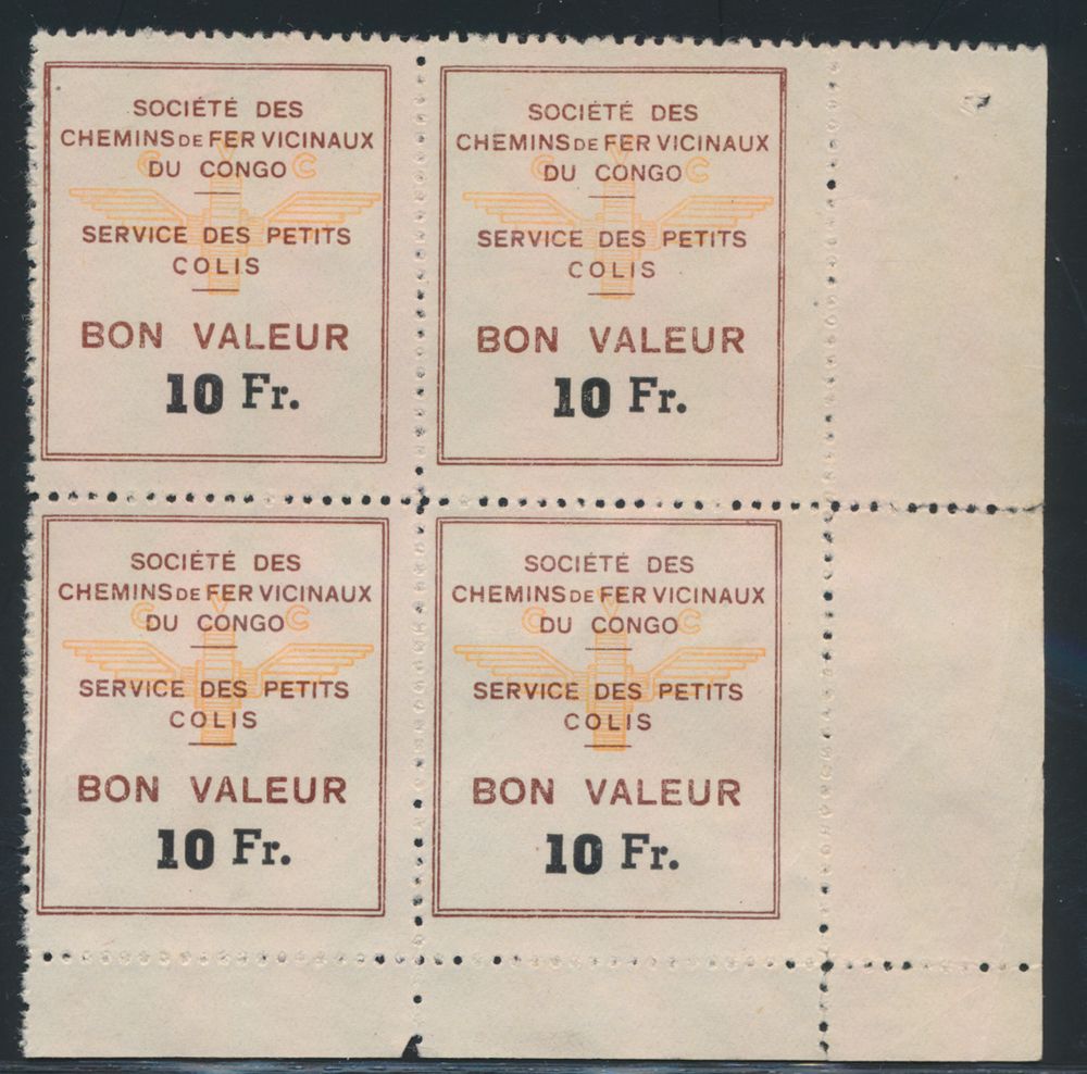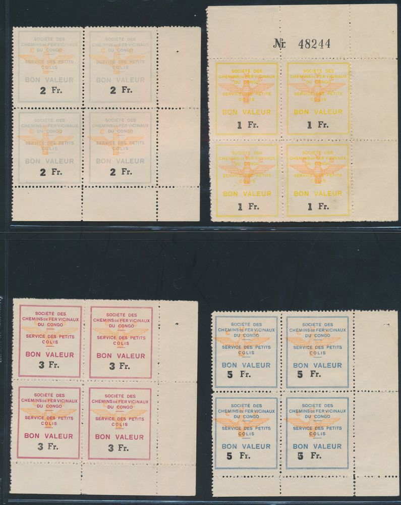 2968 ng imageCP 6/11 Vicicongo 6th series pictorial stamps (Herremanshes nomenclature) in block of 4 with corner piece, one with probably unique sheet N° of sheet, unknown as a multiple, extremely rare!, vf/f (OBP ++€3,000)(Image 1) (Image 2) (Image 3)