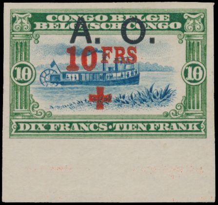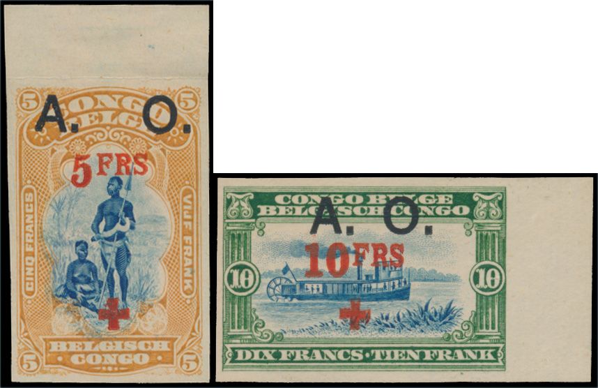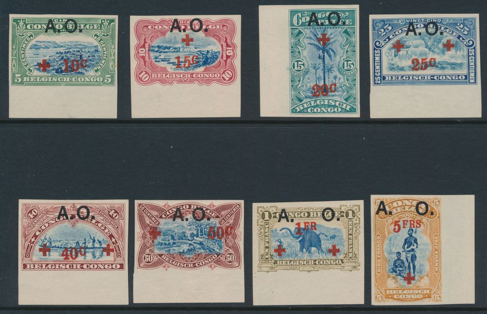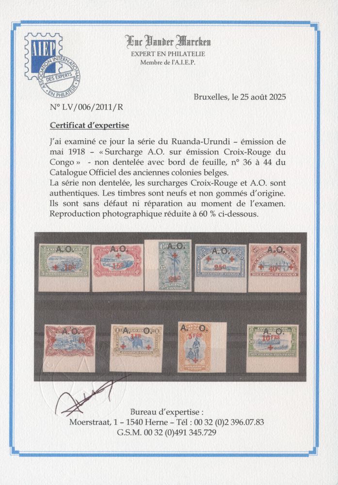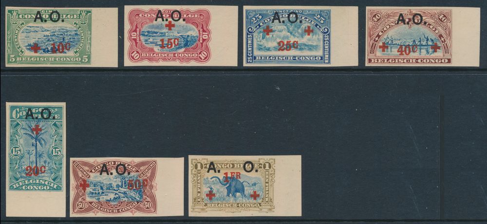 3087 imageN° 36/44 'Red Cross Set' from the Belgian Congo overprinted 'A.O.' imperforate, all with sheet margin and original ungummed, with certificate, vf (OBP € 425)(Image 1) (Image 2) (Image 3)