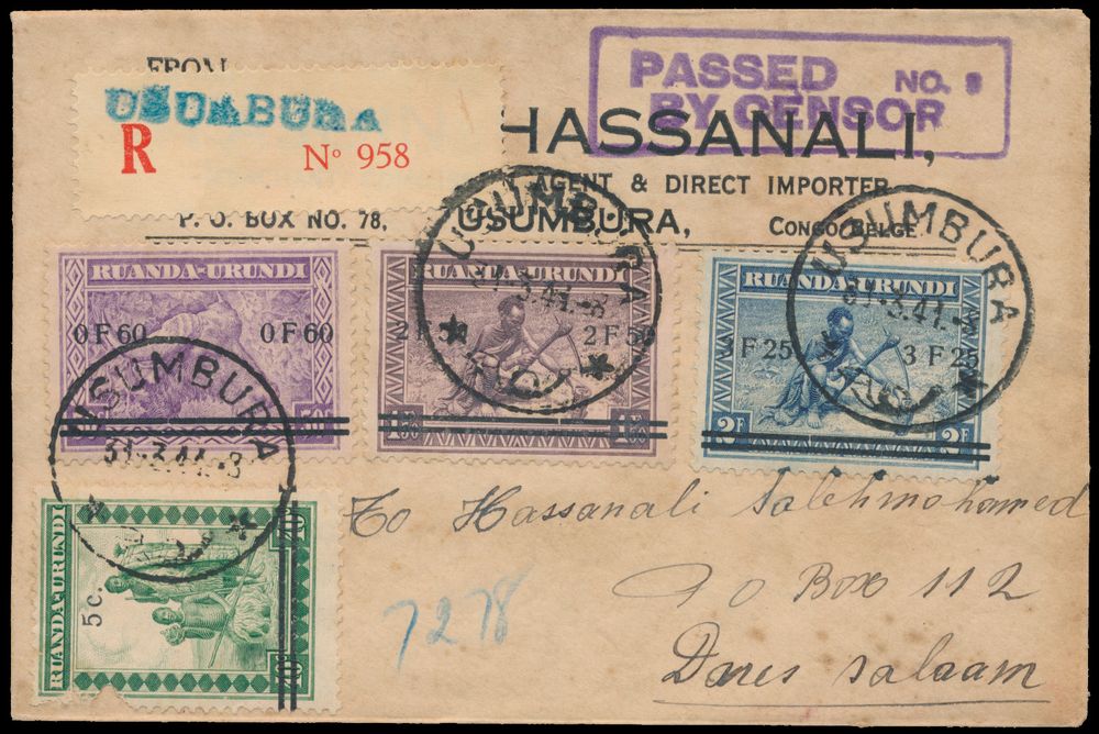 3097 image1941, registered from Usumbura 31/03/41, franked with set N° 114/17, British censorship 'Passed by sensor N° 8 in purple', rare stamps on cover, vf.(Image 1) (Image 2)