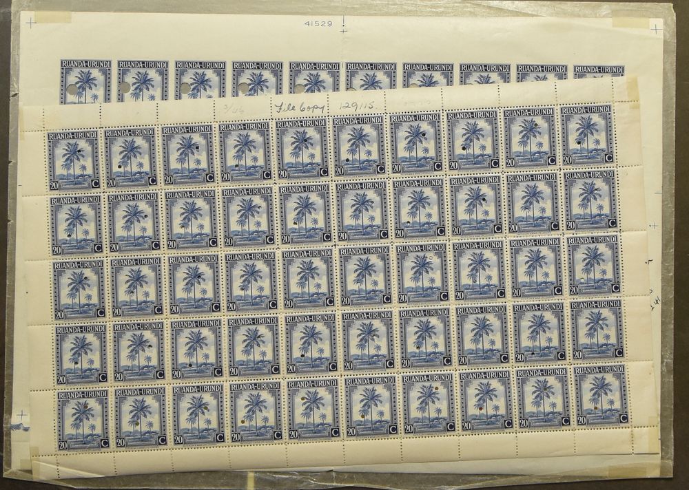 3091 nh imageN° 129 "20c. blue", file copy, 2 complete sheets, one in imperforated (no gum) and one perforated, vf/f(Image 1) (Image 2)