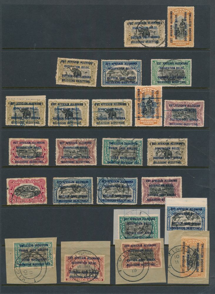 3081 0 image1916/1918, accumulation of 28 stamps mainly of the EAAOB Mols issue, various cancellations including TABORA linear mark, BPCVPK N° 1, Kigoma, Usumbura, Kigoma, Poste militaire, mixed quality, vf/f/to be checked(Image 1) (Image 2)