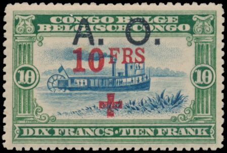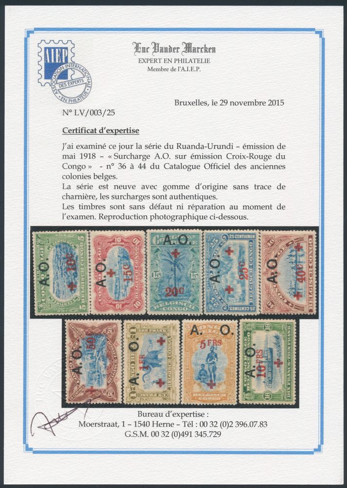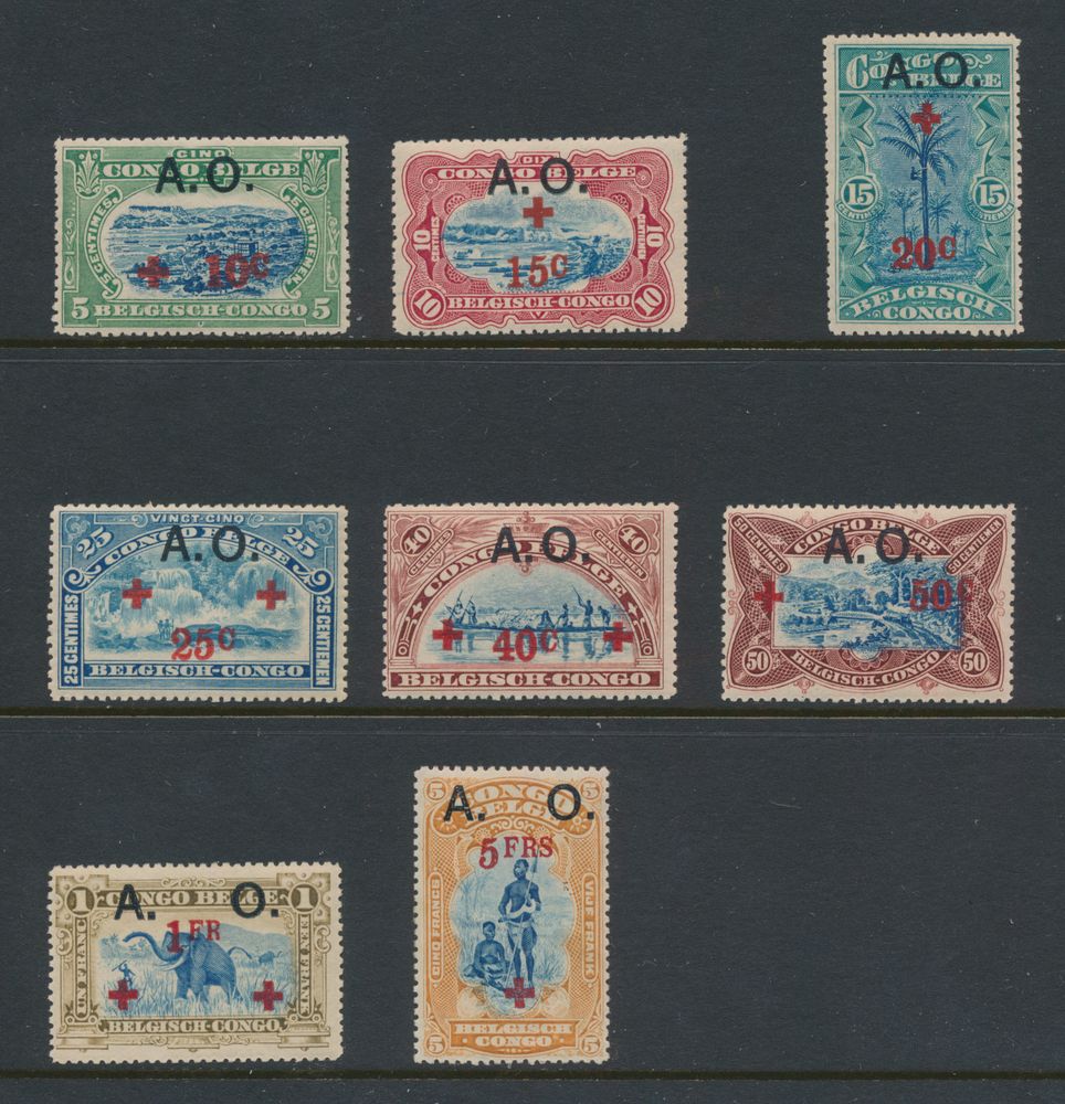 3086 nh imageN° 36/44 'Red Cross set' from the Belgian Congo, overprinted 'A.O.' RARE in this condition, with certificate, vf (OBP €425)(Image 1) (Image 2) (Image 3)