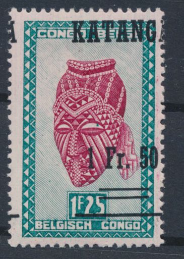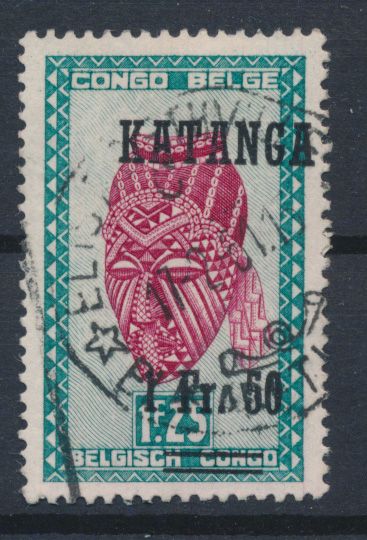 3122 0 imageN° 18-Cu "1,50fr on 1,25fr - Masks issue" with curiosity of overprint "misplaced", cancelled Elisabethville-C, not listed in OBP, scarce, vf(Image 1)