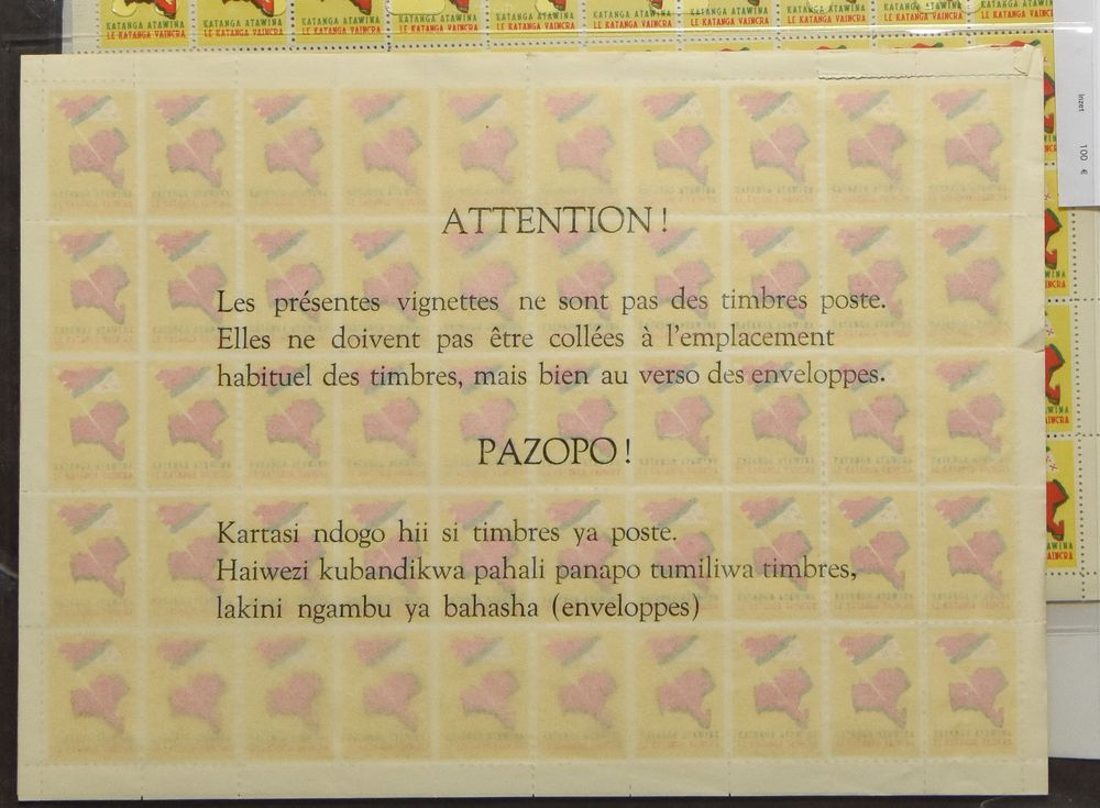 3138 nh imageKatanga Atawina, 2 sheets Cinderella, one perforated and one "percée en ligne" + photo of Moïse Tshombe, vf/f(Image 1) (Image 2) (Image 3)
