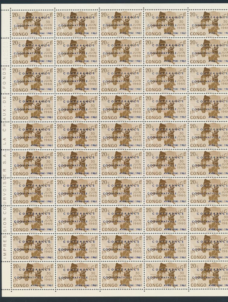 3140 nh imageN° 420/29 "Conference Coquilhatville", the complete set of 10 values in full sheets of 50 items in perfect condition, vf (OBP €800)(Image 1) (Image 2)