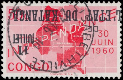 3134 0 imageN° 41-Cu "50c - Independence issue" with inverted overprint, cancelled Elisabethville-1 D2, January 27, 1960 (superb strike), very rare not listed in OBP, vf(Image 1)