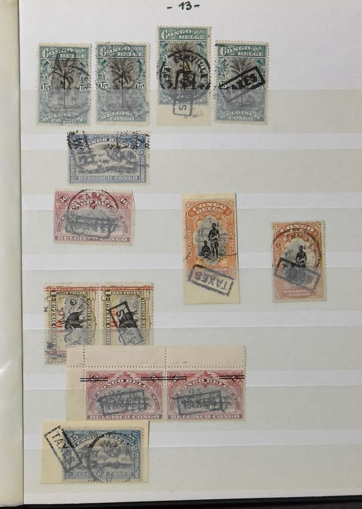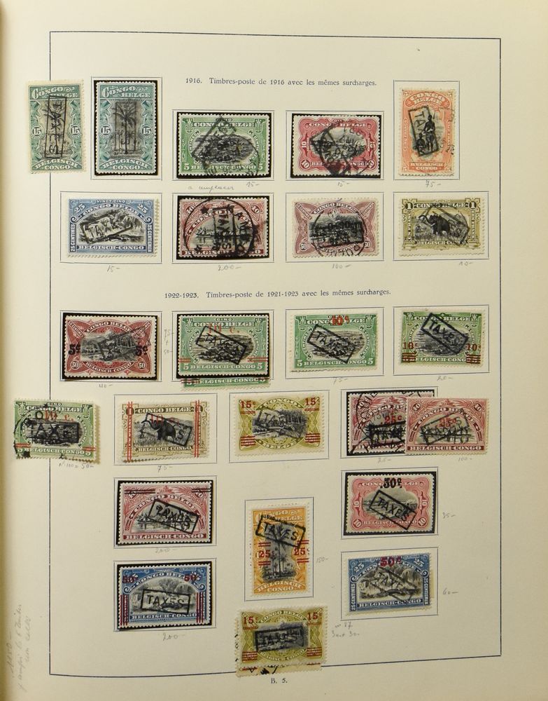 3168 nh/og/0 image1909/1960 Collection in 1 stockbook of stamps from the Belgian Congo and Ruanda-Urundi, including taxes and airmail, with some beautiful cancellations on pairs, added G. Huyghebaert's book “Geschiedenis van de postzegels en postwaardestukken van Etat Indép. du Congo” (R Editions 1990, 64 pages), f(Image 1)