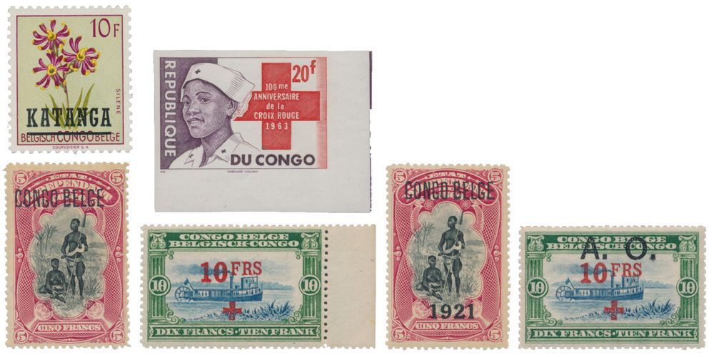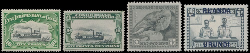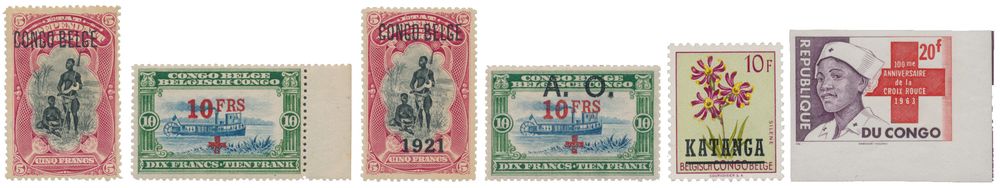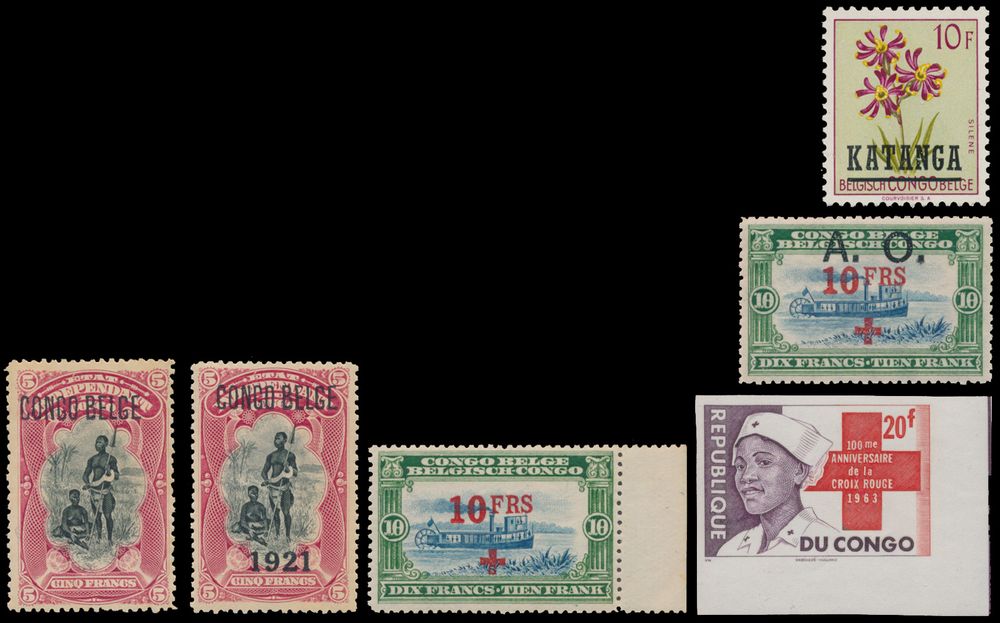 3173 nh/og imageRuanda-Urundi, Rep. Congo, Katanga, Sud Kasaï, Stanleyville, collection in old binder, with 8 values Tombeur & Grisolle, series, stamps with margins, TX, vf/f/to be checked(Image 1) (Image 2) (Image 3) (Image 4)