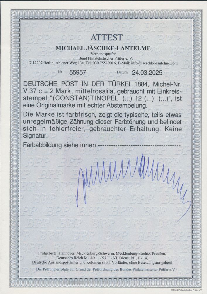 3194 0 imageN° V37c "1884 - 2M. medium rose-lilac" with certificate Jäschke-Lantelme, vf (Mi. €500)(Image 1) (Image 2)