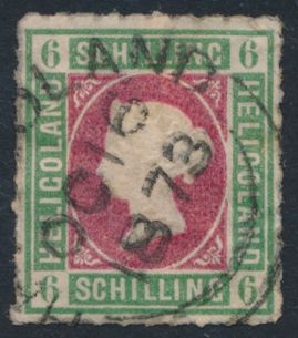 3190 0 imageHeligoland : N° 4 '6 S green and red' with central 'Helgoland' cancellation (16OC 1873), in perfect condition and genuine used- rare (Mi €600)(Image 1)