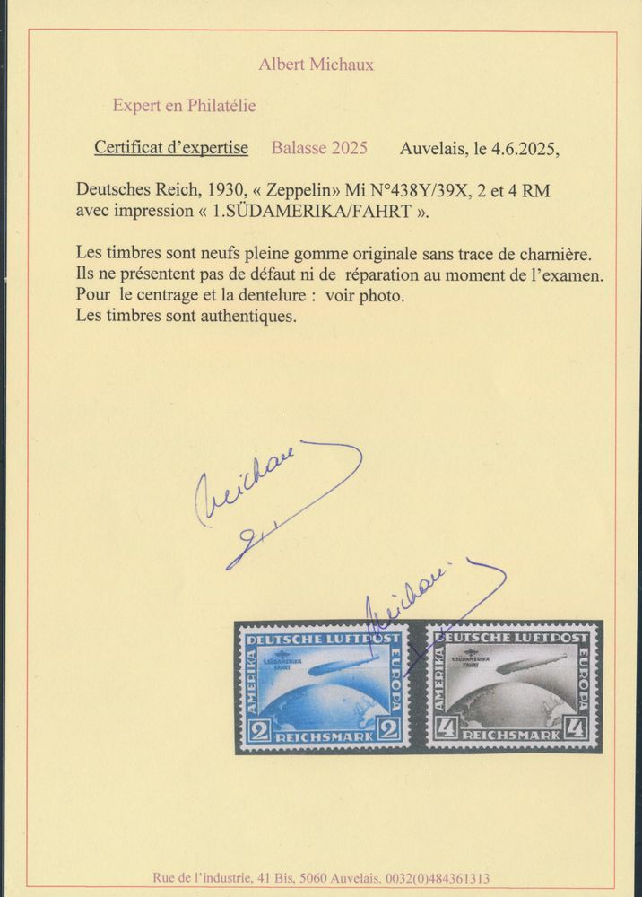 3237 nh imageN° 438y/439x "1930 - Zeppelin Südamerika-Fahrt", photo certificate, vf (Mi. €3,500)(Image 1) (Image 2)