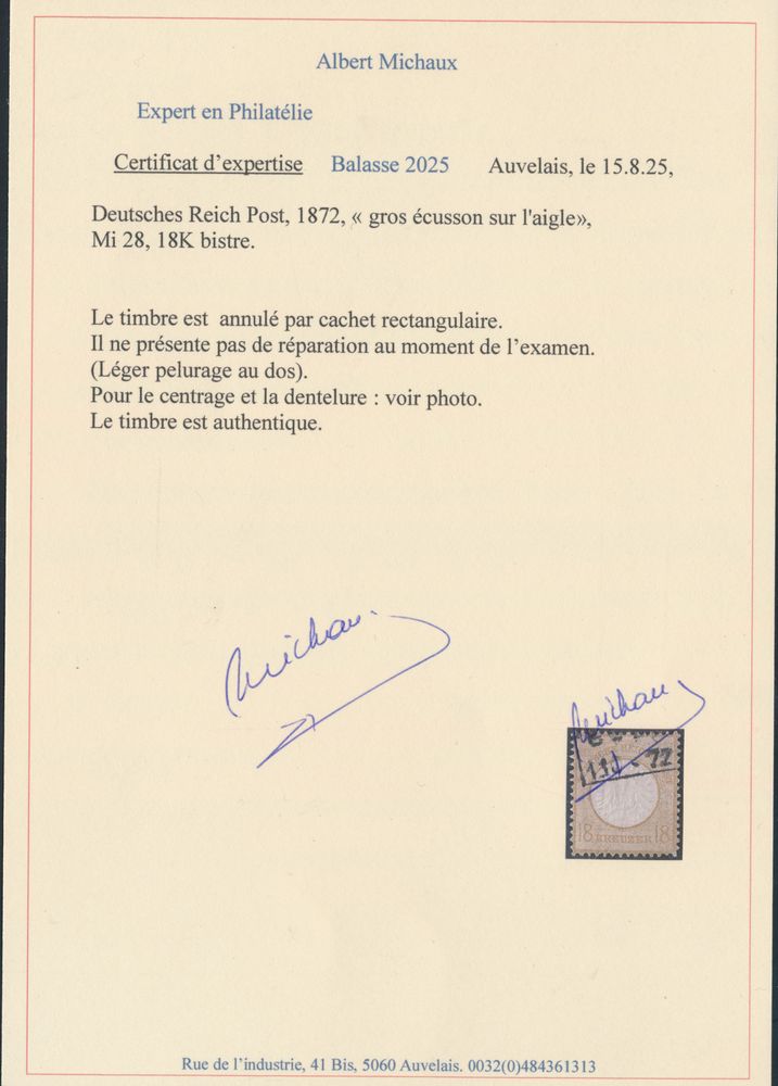 3221 0 imageN° 28 "1872 - large breast shield 18kr. bister", slight thinning, with photo certificate, vf/f (Mi. €2,800)(Image 1) (Image 2)