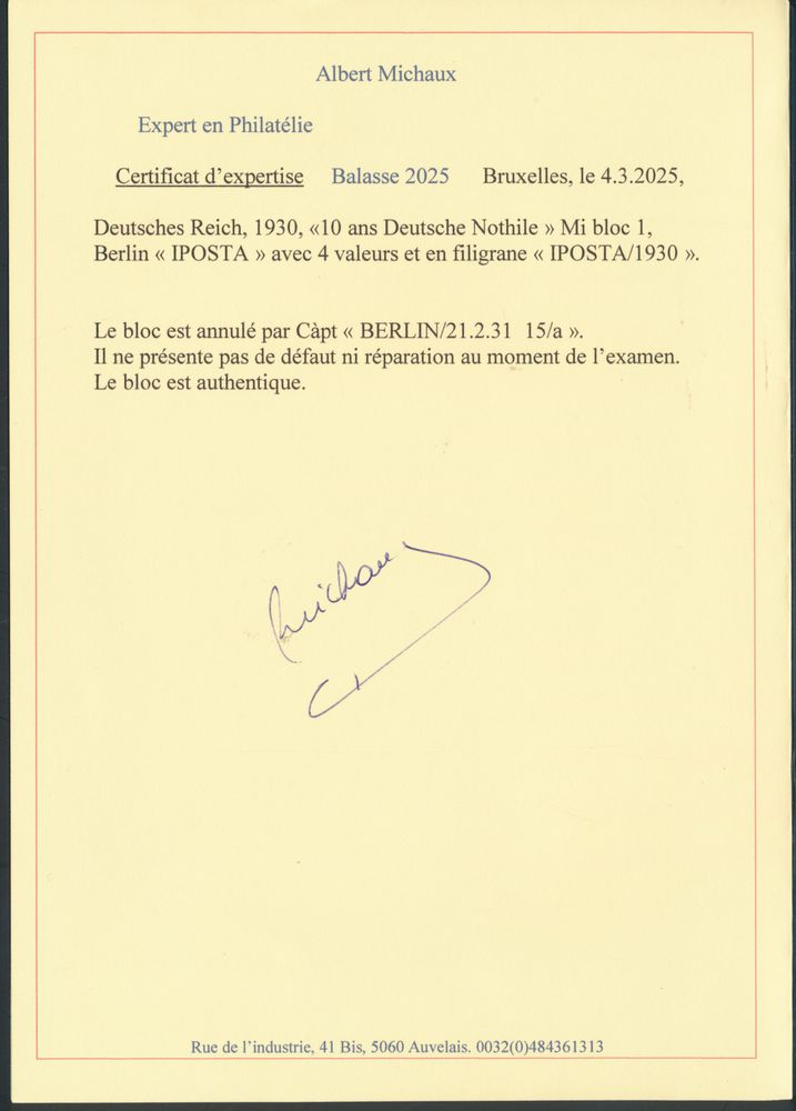 3238 0 imageBL 1 "1930 - IPOSTA" with Balasse photo certificate, vf (Mi. €2,000)(Image 1) (Image 2)