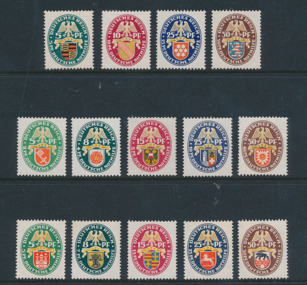 3228 nh imageN° 398/401 + 425/34 "1926, 1928, 1929 - coat of arms Nothilfe", vf (Mi. €710)(Image 1)