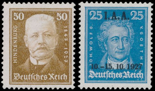 3229 nh imageN° 403/409 "1927 - Hindenburg" and overprint "I.A.A.", vf (Mi. €360)(Image 1) (Image 2)