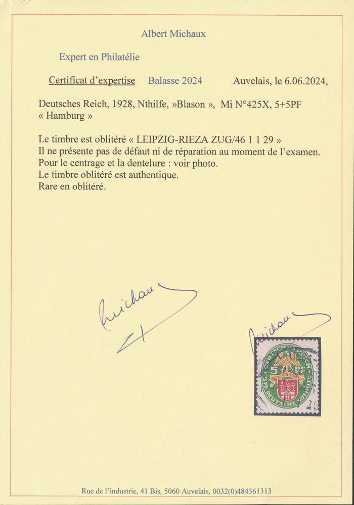 3231 0 imageN° 425X "1928 - Nothilfe 5 + 5pf. standing watermark", rare, with photo certificate, vf (Mi £4,500)(Image 1) (Image 2)