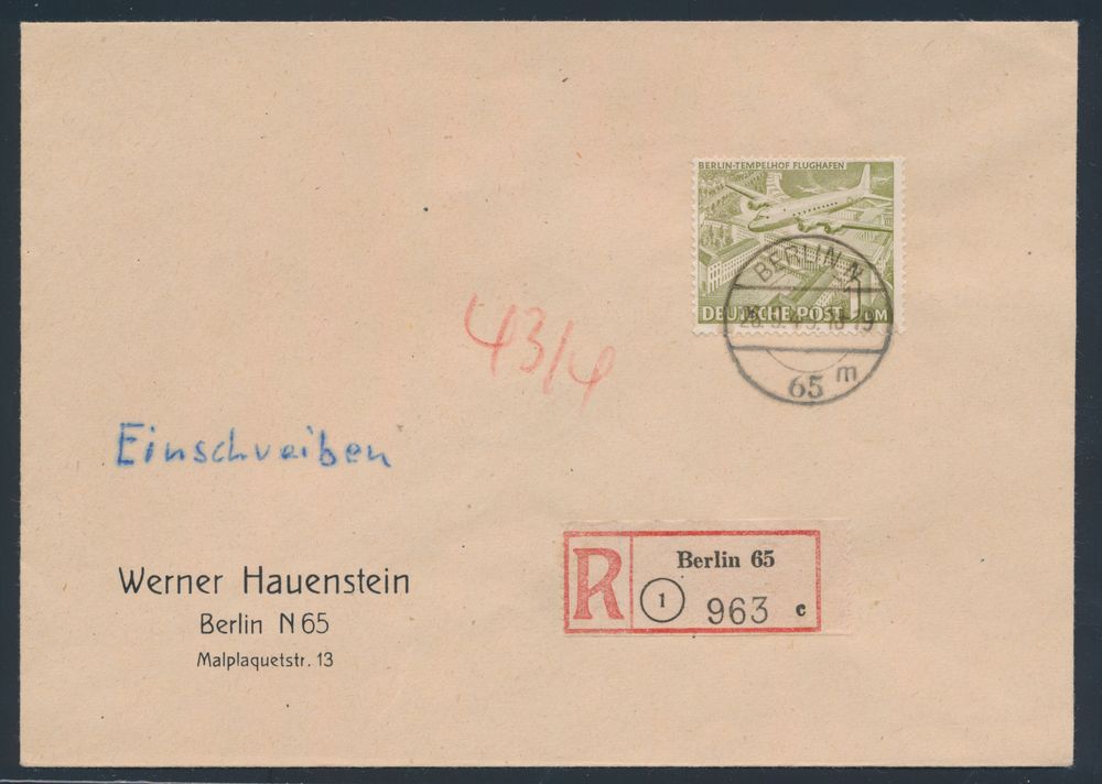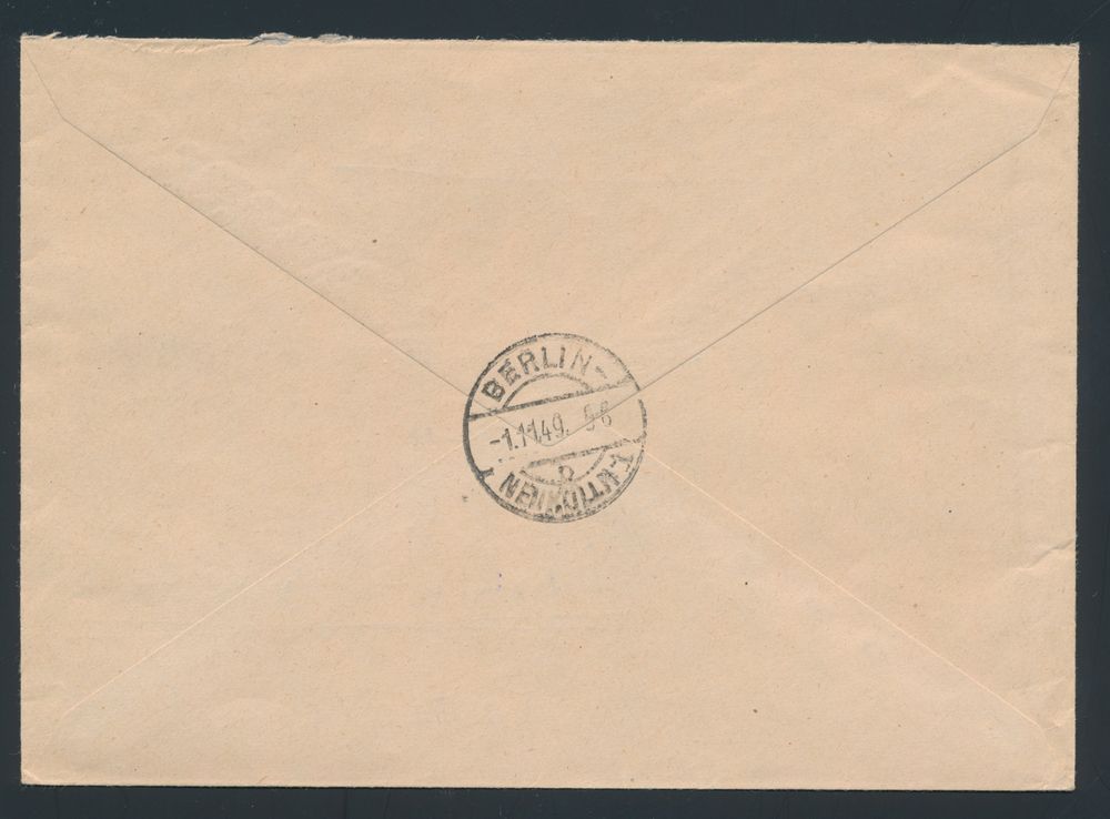 3271 image1949 registered cover sent within Berlin and franked with 1M olive (Michel 57, cat. value €85 on cover), arrival c.d.s. on the back, vf(Image 1) (Image 2)