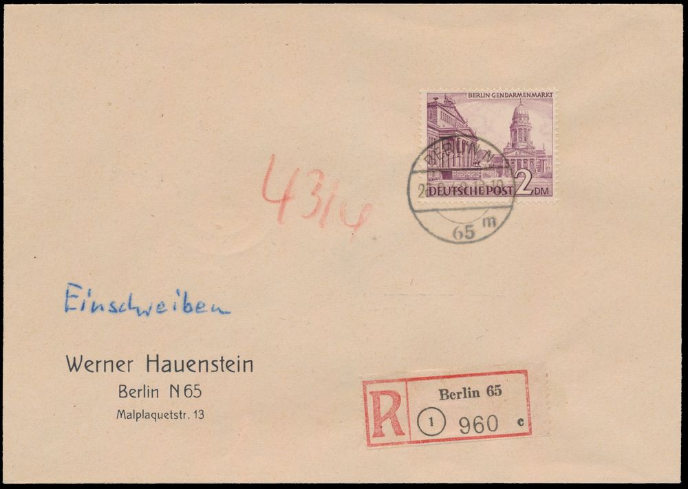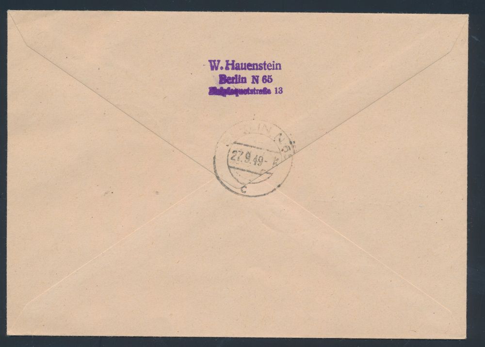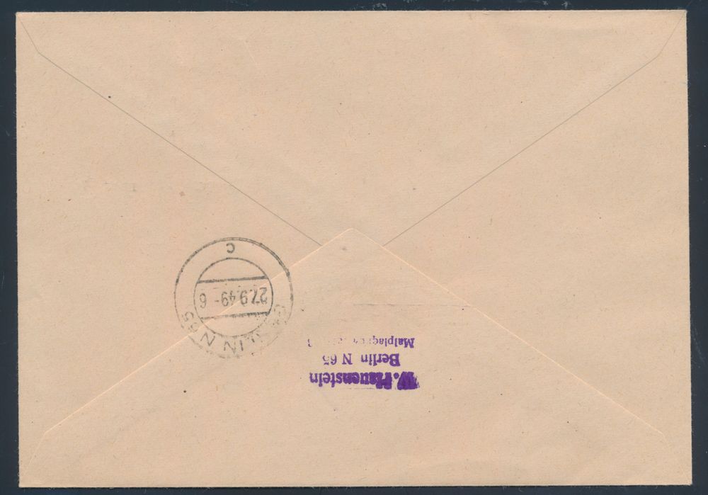 3272 image1949 registered cover sent within Berlin and franked with a 2M purple (Michel 58, cat. value €300 on cover), arrival c.d.s. on the back, vf(Image 1) (Image 2)