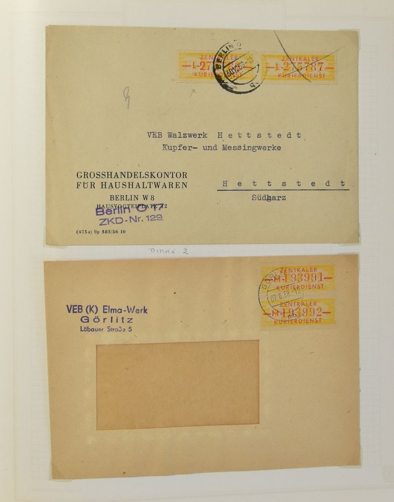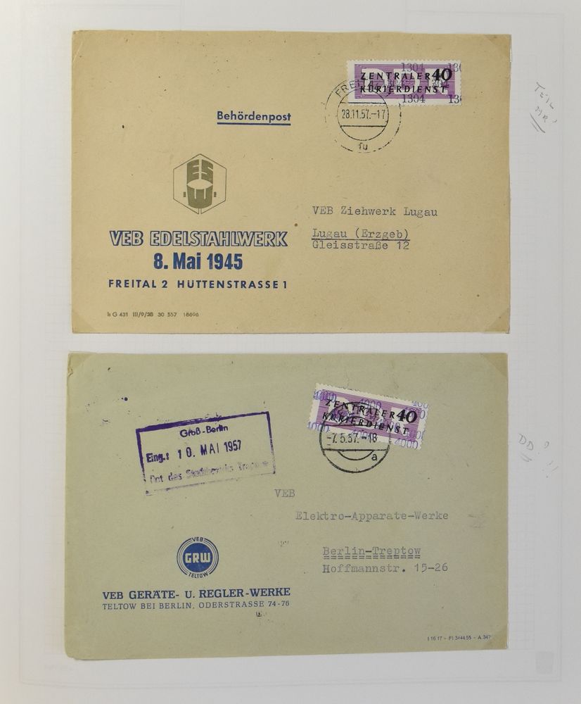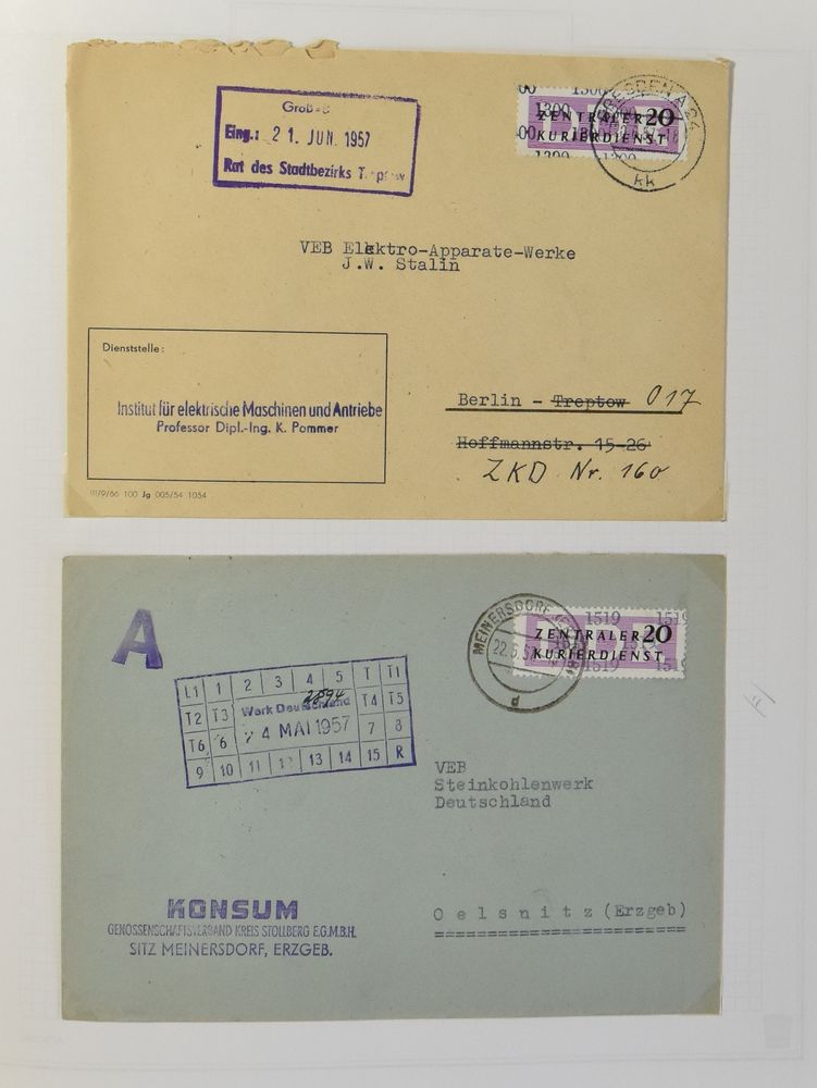 3285 nh/0 imageZKD Service, 1956/1965, extensive collection in Victoria album, including letters, curiosities such as double overprint, watermarks, vf/f(Image 1) (Image 2) (Image 3) (Image 4) (Image 5) (Image 6) (Image 7) (Image 8) (Image 9) (Image 10) (Image 11) (Image 12) (Image 13) (Image 14) (Image 15)