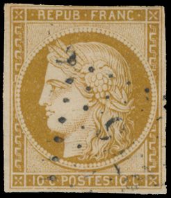 3313 0 imageN° 1 "1850 - 10c. bistre-jaune", Calves sign, vf (Yv. €365)(Image 1)