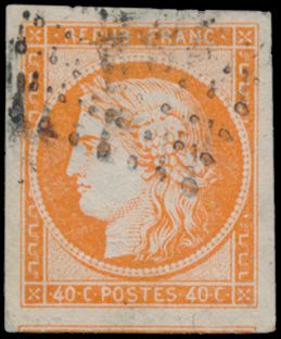 3315 0 imageN° 5 "1850 - Cérès - 40c. orange", superb margins without lower neighbour, vf (Yv. €500) - see photo cover(Image 1)