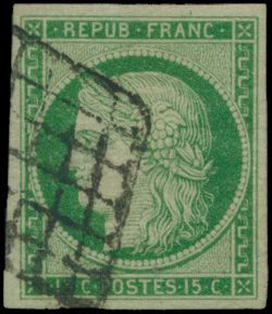 3314 0 imageN° 2 "1850 - 15c. vert Cérès", beautifully margin stamp, vf (Yv. €1,100)(Image 1)