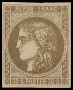 3335 nh imageN° 47 "1870 - 30c. brun foncé", vf (Yv. €700 *)(Image 1)