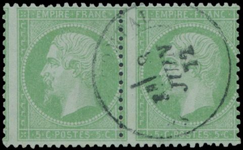 3328 0 imageN° 35 "1871 9 Napoléon III - 5c. vert pâle s. bleu", horizontal pair, both stamps expertised Calves, vf (Yv. €500)(Image 1)