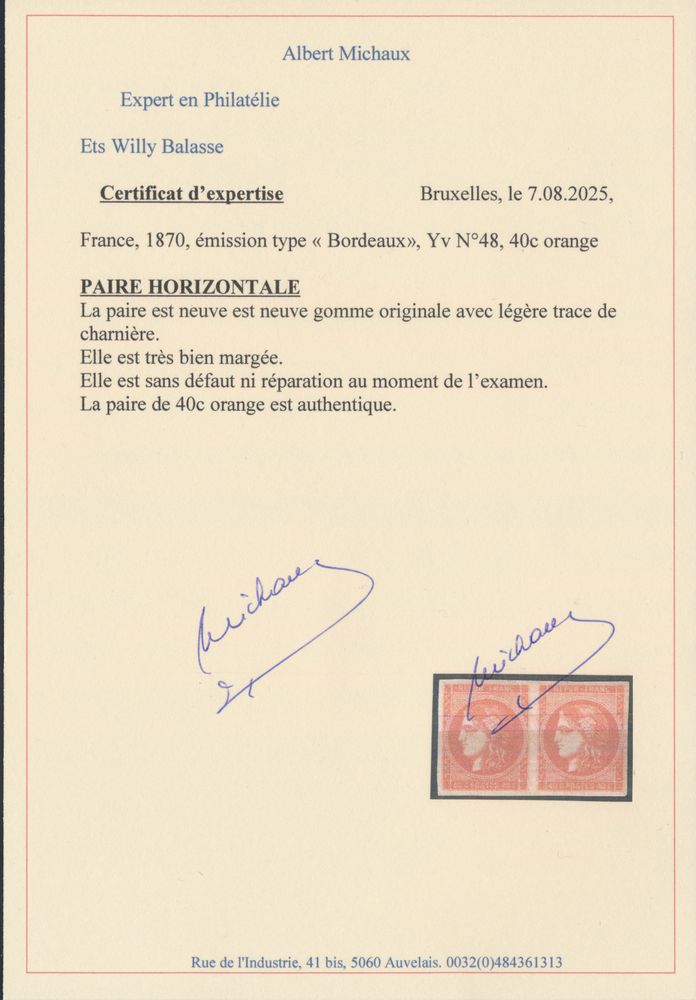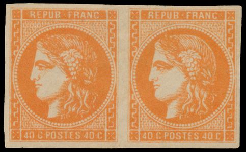 3336 og imageN° 48 "1870 - 40c. orange" in horizontal pair, full margins, fine condition, photo certificate, vf (Yv. €1,600)(Image 1) (Image 2)
