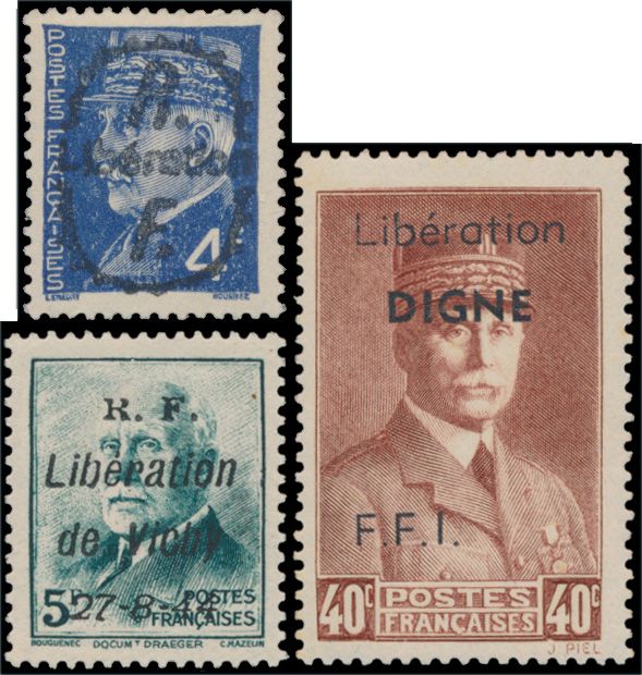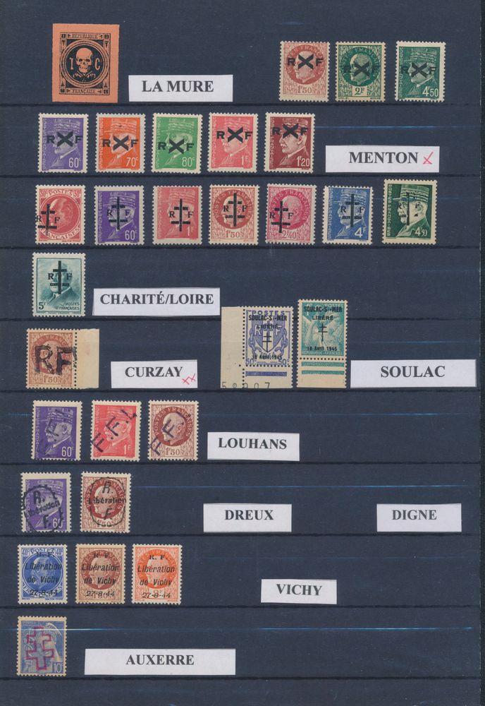 3369 nh/og image1944 Libération beautiful accumulation of various places including Menton, Charité/Loire, La Mure, Soulac, Louhans, Digne, Dreux (including "4fr."), Vichy, some rare stamps, many expertised, vf(Image 1) (Image 2)