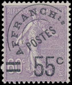 3374 nh imageN° 47 "1922 - Semeuse 55c. on 60c. violet", vf (Yv. €350)(Image 1)
