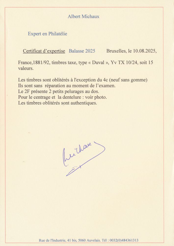 3376 0 imageTX 10/24 "1881/92 type Duval complete", "2fr." with sign, "4c." (*), with photo certificate, vf (Yv. €4,000)(Image 1) (Image 2)