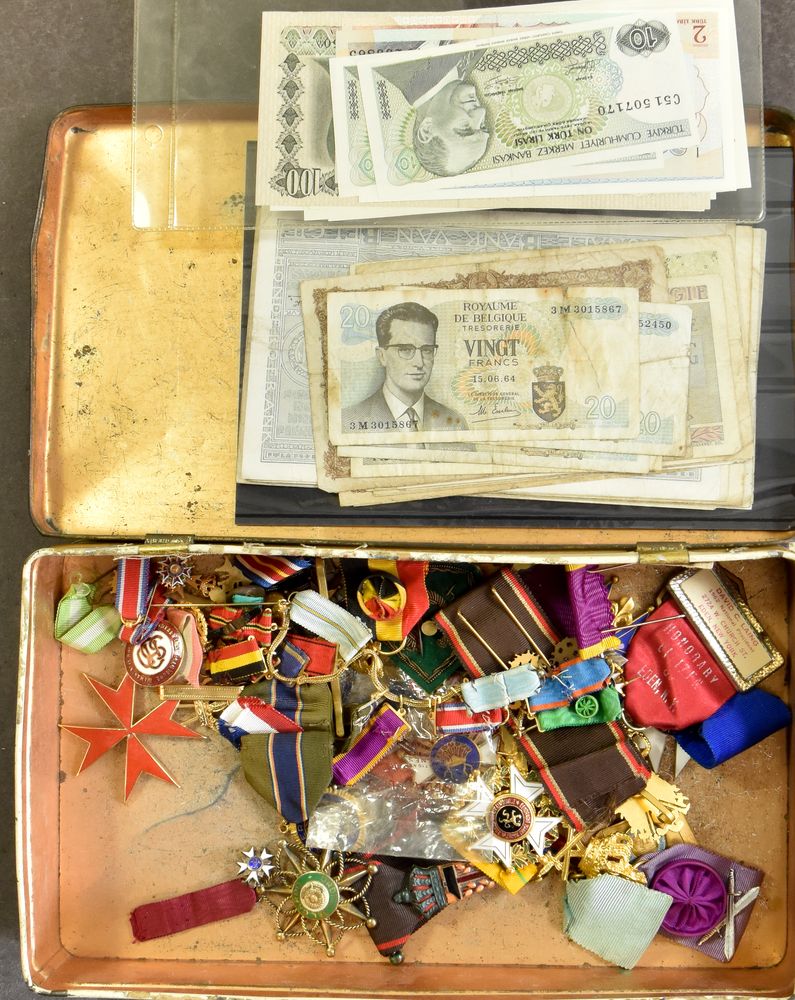 326 imageCOINS AND BANKNOTES: Medals of honour (+/-40 items) and around fifty banknotes(Image 1) (Image 2)