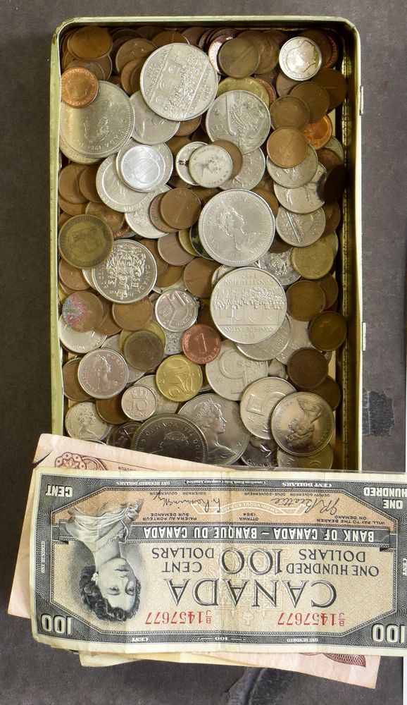 324 imageCOINS: Lot of various coins, including 1 old Canadian banknote(Image 1)